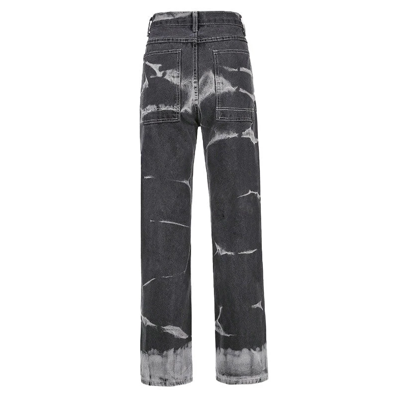 Trendy & Unique ’90s Bleach Tie Dye High Waist Straight Leg Jeans – Gray What’s New