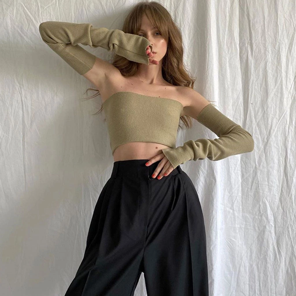 What a cute with this tube top. Crafted with stretchy textured polyester fabric, stand out in separated long sleeves, featuring a slim fit cut along with a strapless styling, a pullover design, and a cropped length accented with a midriff cut at the waist. Find more trendy women’s cropped tops or unique clothing in our boutique, and just match everything, depending on the look you want.