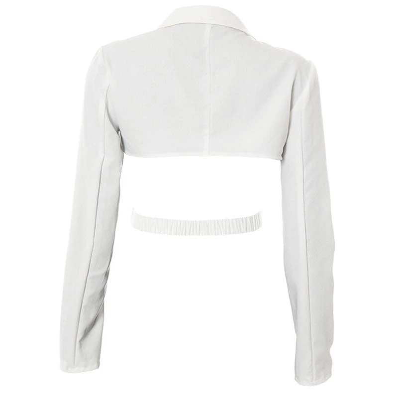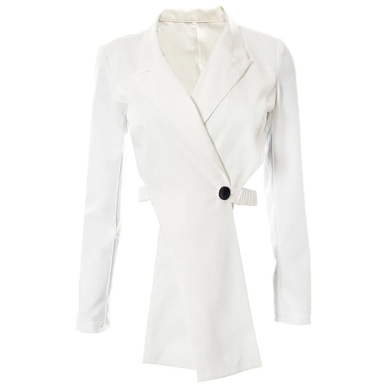 This stylish jacket will instantly elevate any look. Made of stretchy polyester fabric in solid color, embellished with a wrap front placket along with an elasticated strap at the waist, featuring a lapel collar, a long sleeve styling, and an asymmetric hem. Find more trendy women’s jackets or chic clothing in our boutique, and wear it with a pair of shorts for a unique street look.