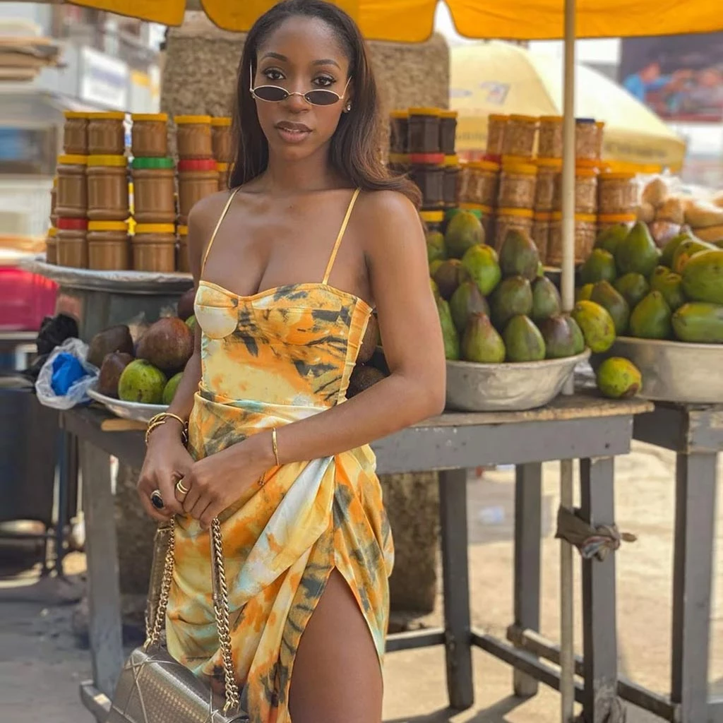 Keep it vintage and glam in this silky satin dress. Crafted with lightweight satin and polyester, embellished with a bright colored yellow hue, featuring a scoop neck along with adjustable slender straps, a pullover flattering fit cut accented with gathering details to the front and a concealed zip fastening to the rear, and a mid-calf length accented with a dramatic side slit. Find more unique women’s slip dresses or trendy clothing in our boutique, and match it with high heels and a gold color baguette bag for a charming party look.