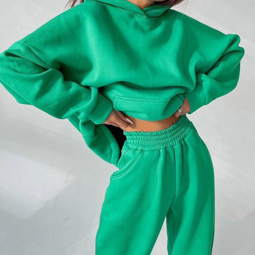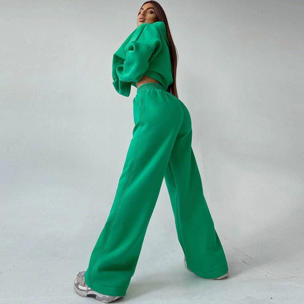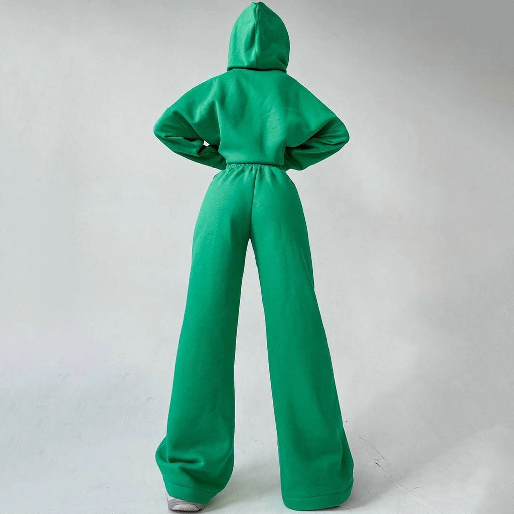 Trendy & Unique Athletic Solid Long Sleeve Wide Leg Hoodie Matching Set – Green
