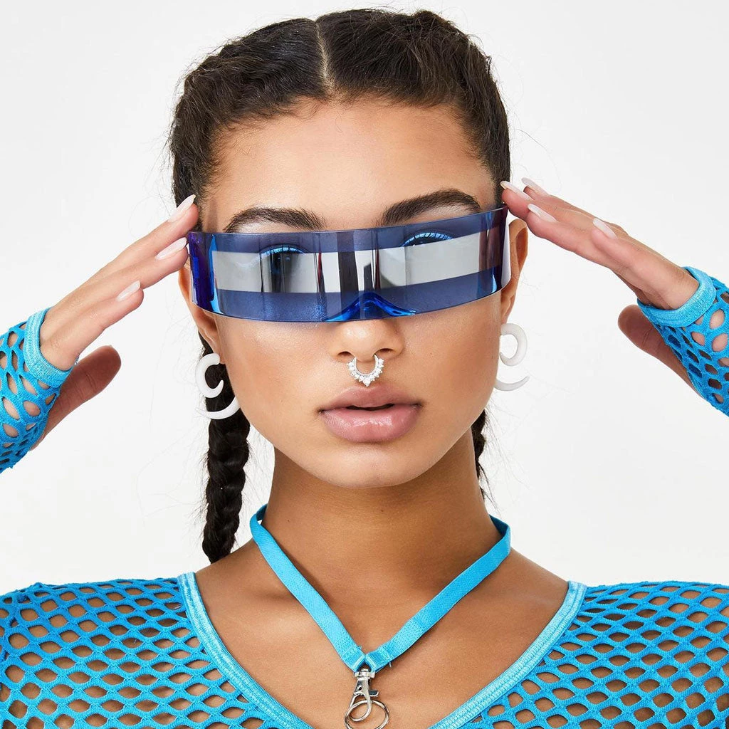 When sunny days hit, it’s time to slip on our futurist sunglasses. Crafted from lightweight polycarbonate material, embellished with a transparent frame in a shield styling, featuring tinted lenses along with curved arms. Find more trendy women’s sunglasses and eyewear in our boutique, and complete a unique street look with our accessories.