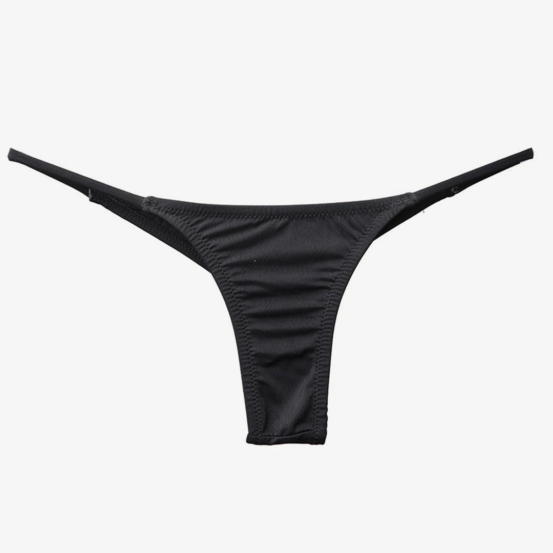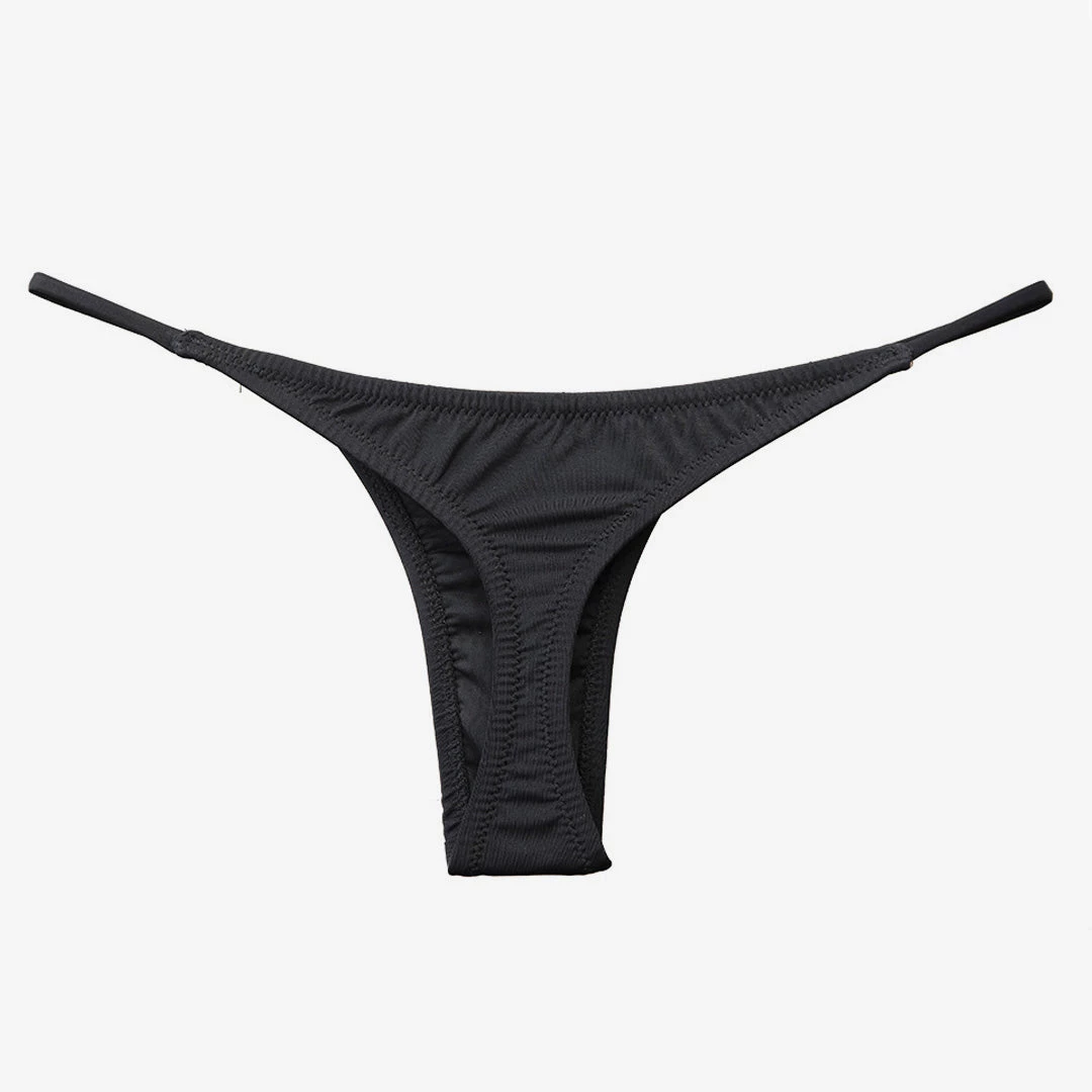 This sexy bikini bottom enhances a timeless look for your next day on the sand. Made of polyester and elastane, embellished with elastic strings to the sides, featuring a low rise design in thong styling, skimpy fit coverage in solid color. Find more women’s bikini bottoms or trendy swimwear in our boutique, and finish a unique bikini set with a same shade of color top to ensure a matching wear for your weekend trips.