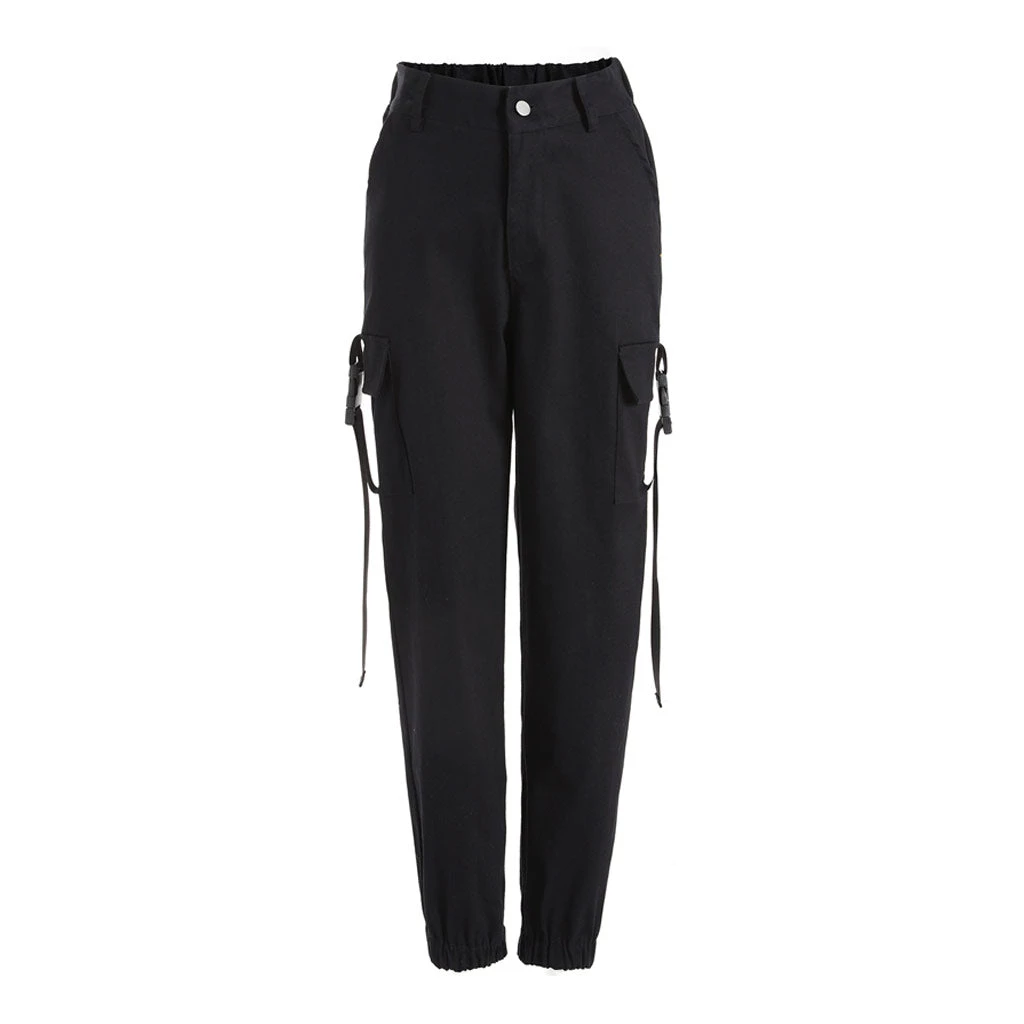 Black pants will always be in style, but this baggy & loose style has popped up as the hue to know this season and we’re so here for it. Made of blend cotton and polyester in solid color, embellished with cargo patch pockets along with fastening straps, featuring a covered elastic high rise waistband trimmed with belt loops, a button closure along with a concealed zip fastening to the front, a loose cut structured with twin slanted pockets and cover elastic hems. Find more unique women’s pants or trendy clothing in our boutique, and pair it perfectly with a crop top and combat boots for an athletic look.