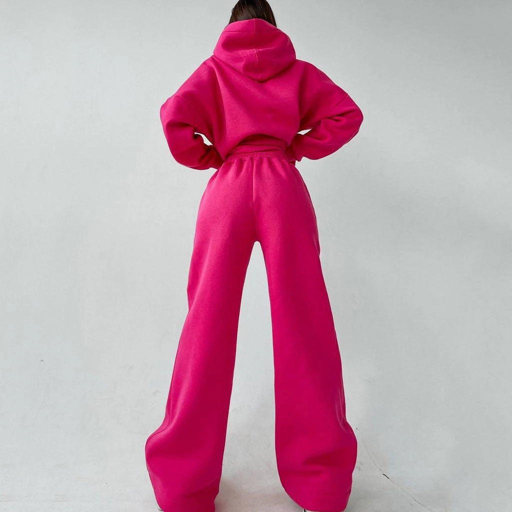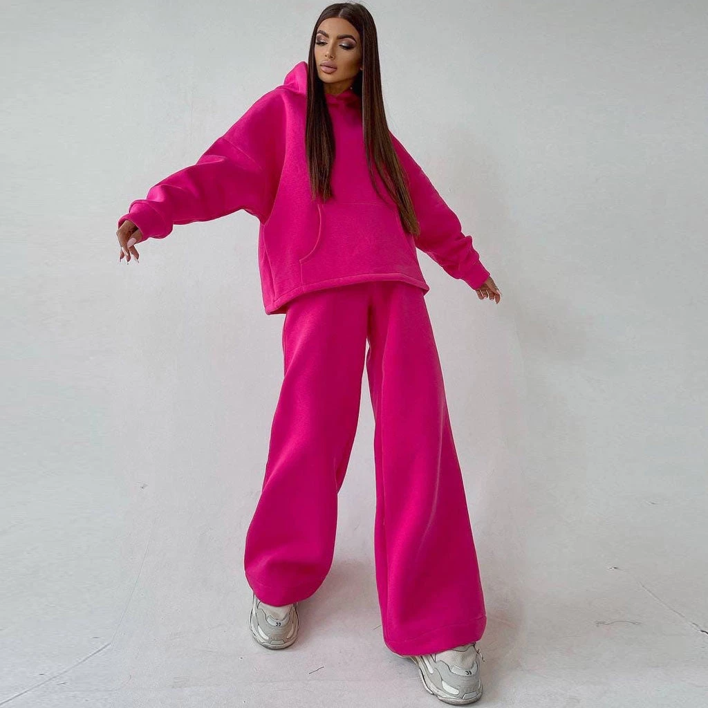 Trendy & Unique Clothing Athletic Solid Long Sleeve Wide Leg Hoodie Matching Set – Rose