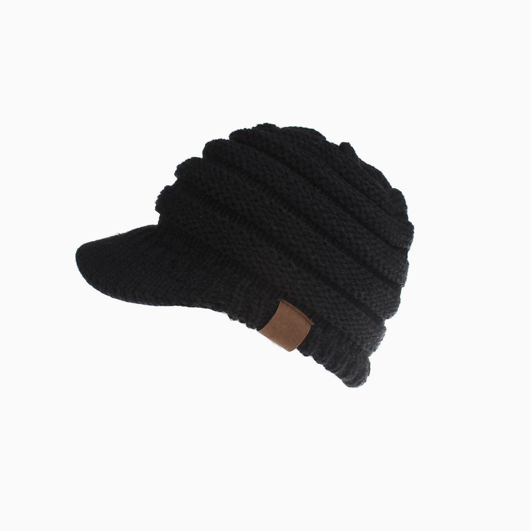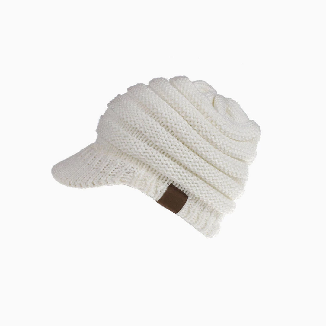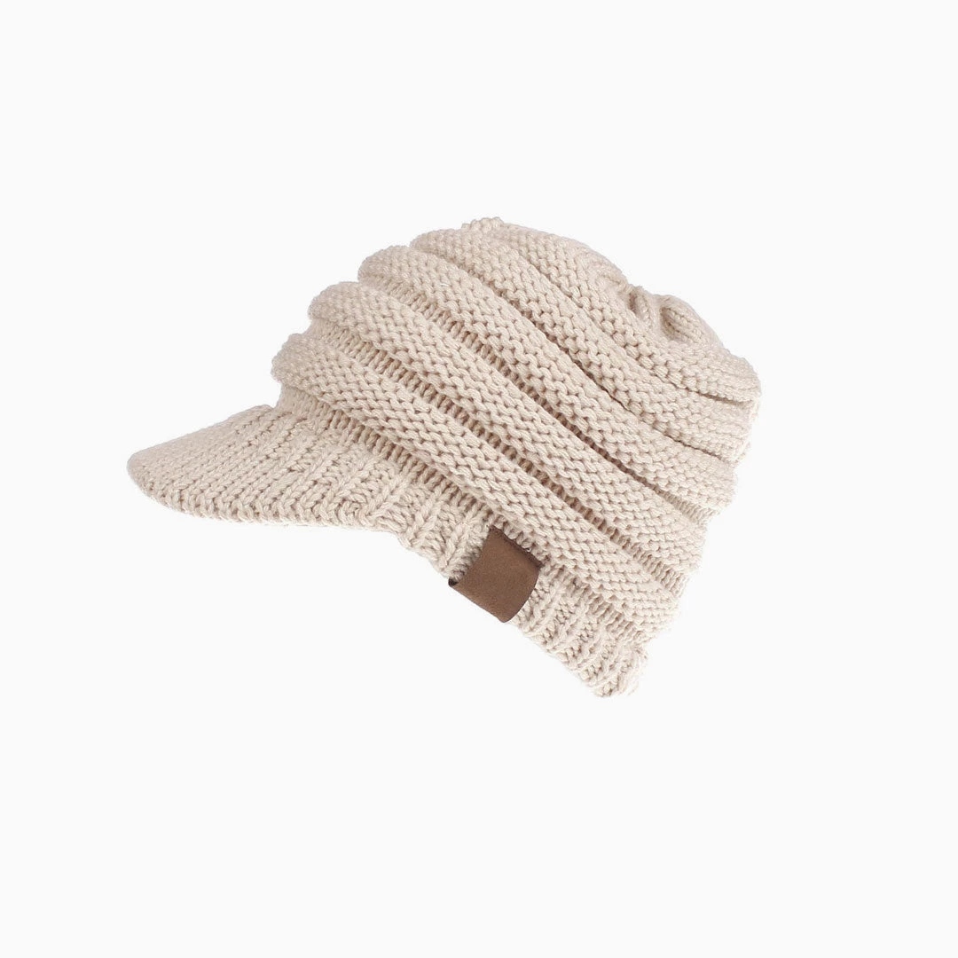 Stay cozy and warm in this so soft cabbie cap. Crafted with acrylic yarn, embellished with a ponytail hole on the top, featuring textured pattern and a short brim over the forehead. Find more trendy women’s hats and headwear in our boutique, and complete a warm and fashionable street look with our unique accessories.