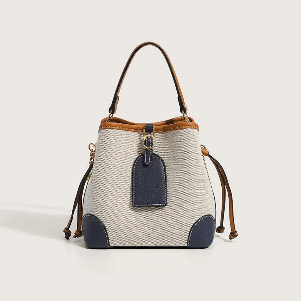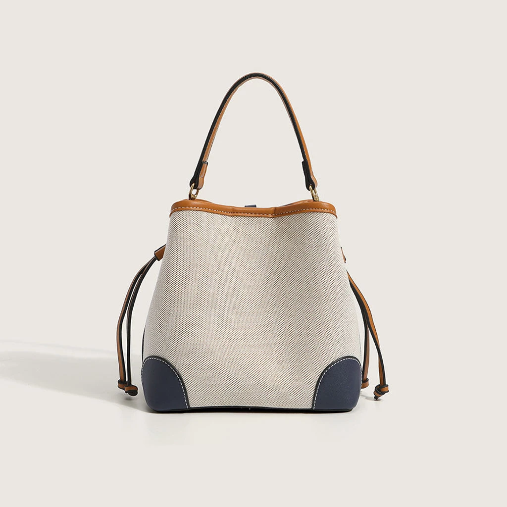 Going out and about in the town is even better with this gorgeous bag! Made of PU leather and canvas, embellished with twin drawstrings to the side, featuring a magnetic buckle closure to the top along with a detachable strap, an interior zipper pocket. Find more trendy women’s bucket bags or unique bags in our boutique, and elevate your daily look with our accessories.