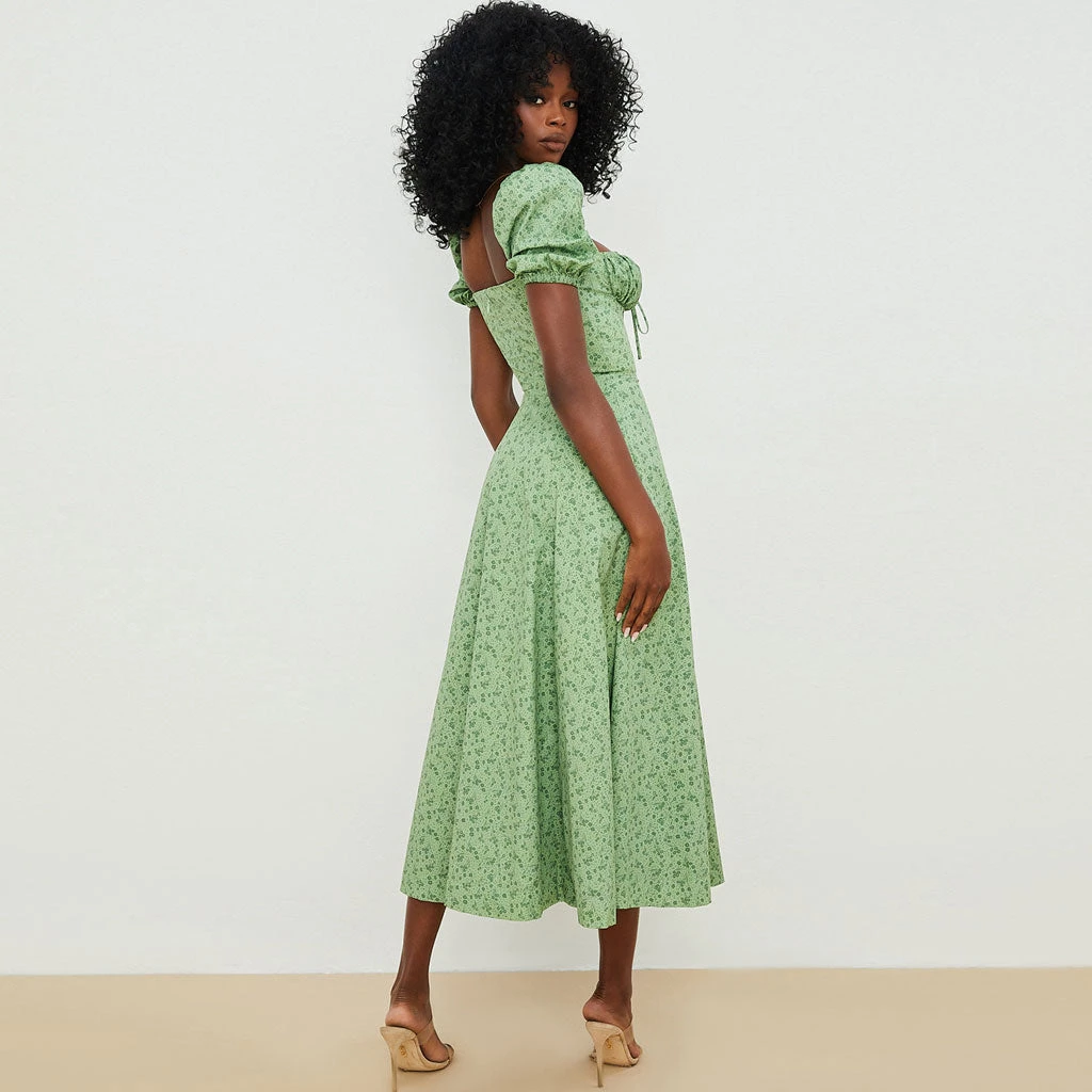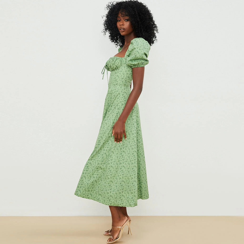 Go ahead and get a little risky with this cute and sexy printed sun dress. Made from cotton blend fabric and polyester, stand out in flower patterns throughout, featuring a square neckline structured with a ruched trim drawstring tie and a keyhole at the chest, a fit-and-flare cut tailored with covered elastic puffy sleeves, a rear zip fastening, and the particularly long length accented with a dramatic side slit. Find more unique women’s summer dresses or trendy clothing in our boutique, and complete a sweet French style with high sandals in sunny days or toss on a jacket and heeled boots in fall and winter.
