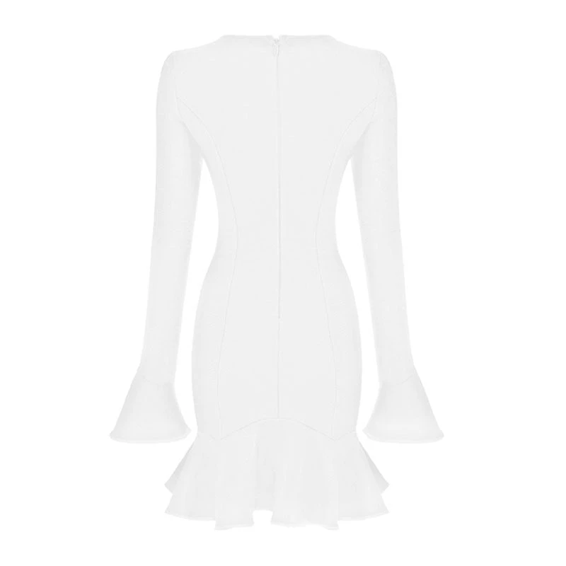 This figure-skimming mini dress is a timeless option for day-to-night dressing. Made of stretchy polyester fabric, stand out in a dramatic cut-out to the chest, featuring a round neckline in pullover design, long sleeves along with puffy cuffs, and ended up with mini length accented with a flouncing hem. Find more unique women’s party dresses or trendy clothing in our boutique, and wear it with a pair of our butterfly heels when going out.