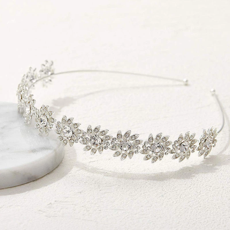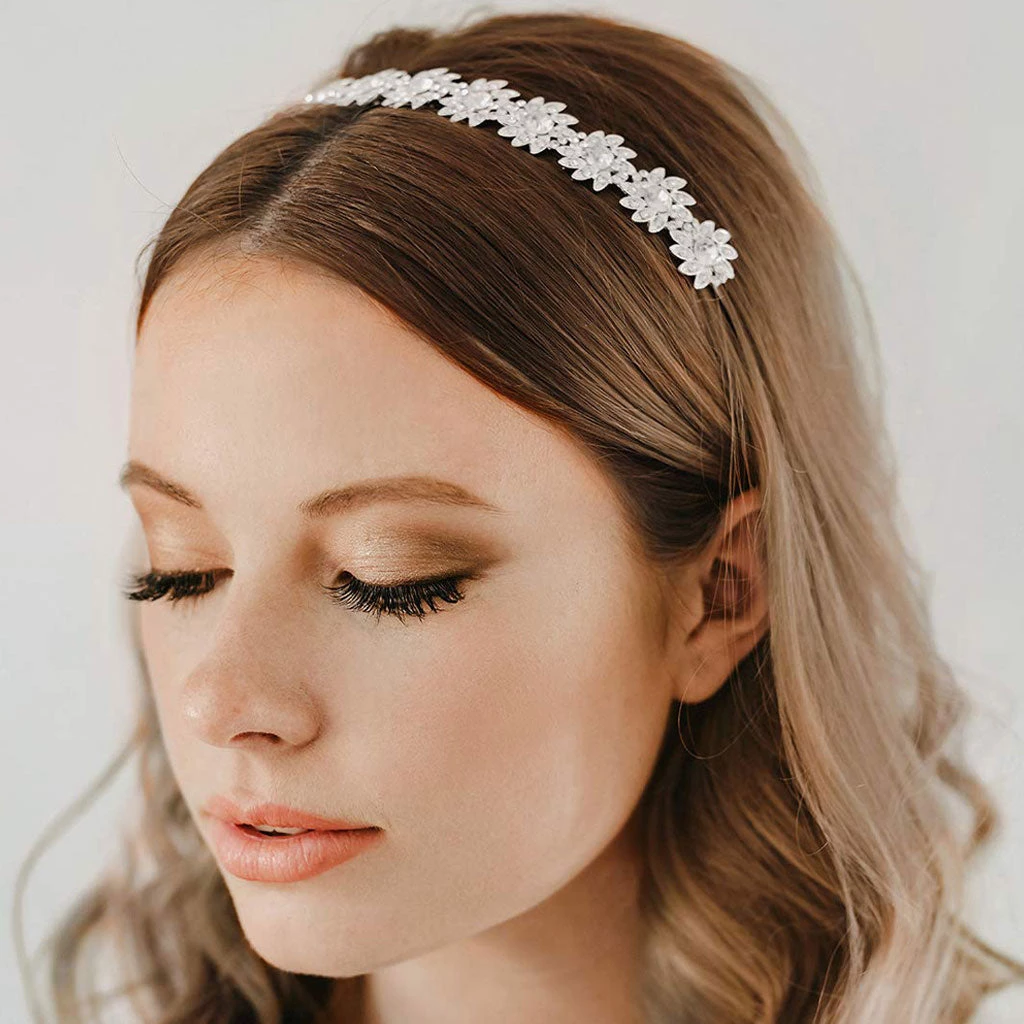 This sparkly headband brings a bit of dazzle in your evening look. Made of silver-plated hardware fabric, embellished with its dazzling rhinestones encrusted surface, featuring a circular cut shaped sleek band along with flower motifs and finished with a flexible slip-on style. Find more trendy women’s headbands or unique hair accessories in our boutique, and style it for a classic look.