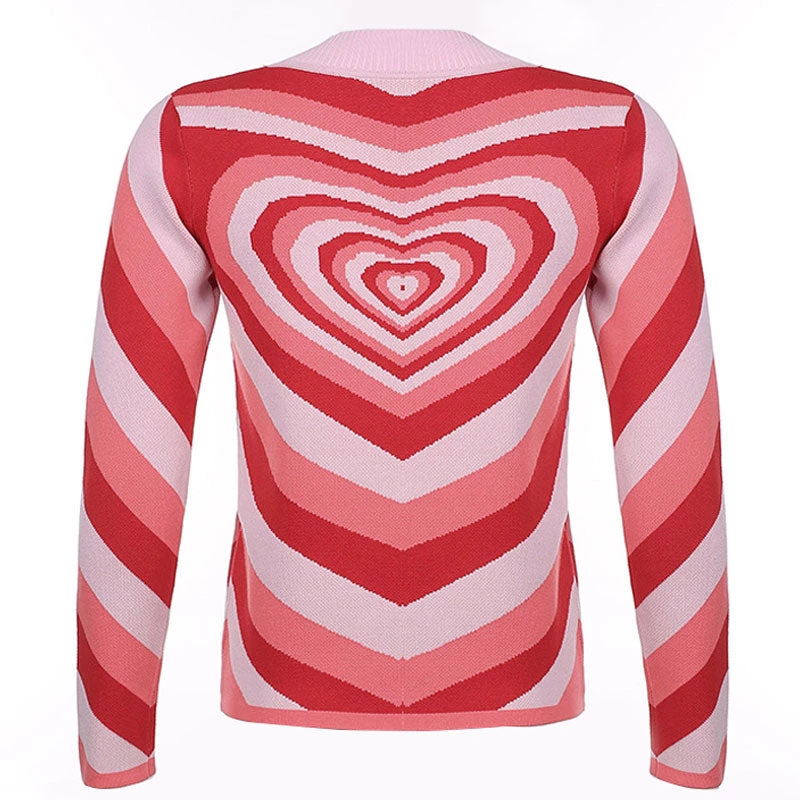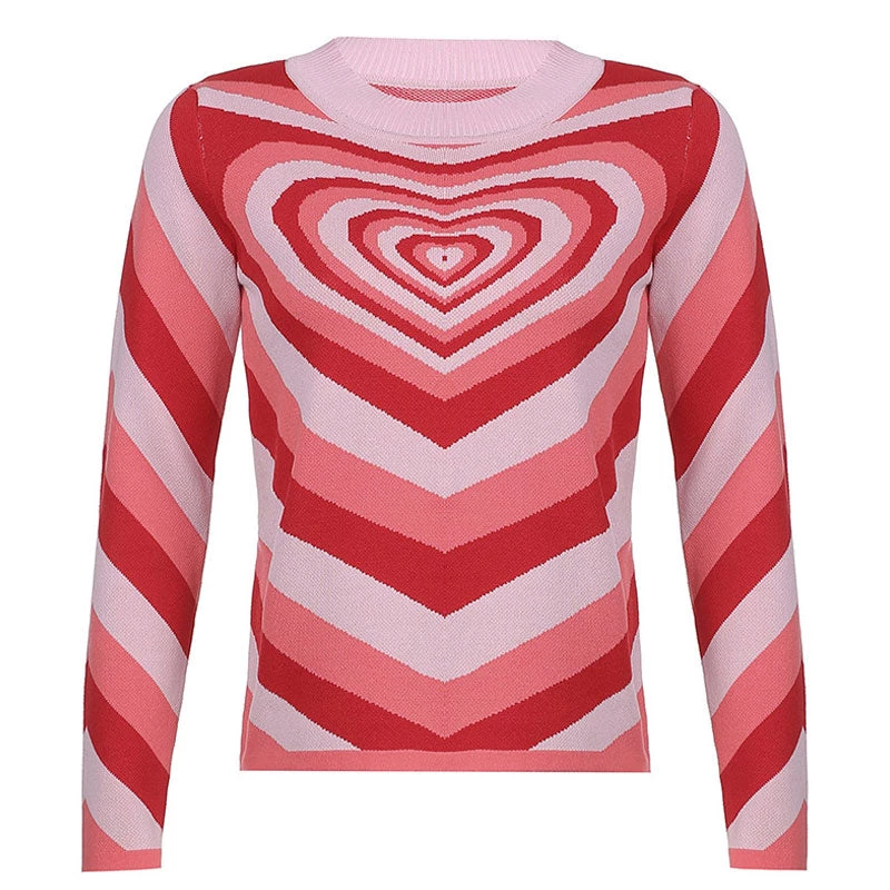 This knit top is an easy choice for autumn and winter. Made of jersey blend, stand out in color block gradient sweetheart love patterns throughout, featuring a pullover styling structured with a ribbed high neckline, long sleeves trimmed with ribbed cuffs, a straight silhouette in regular fit. Find more unique women’s sweaters or trendy clothing in our boutique, and simply team it with a pair of white color pants for a refreshing winter look.
