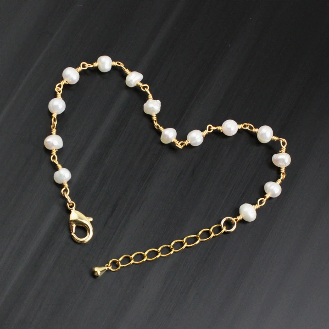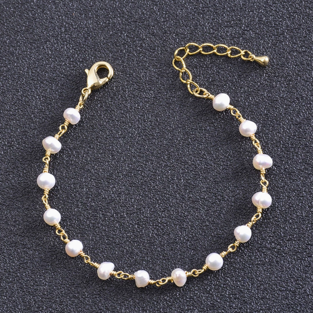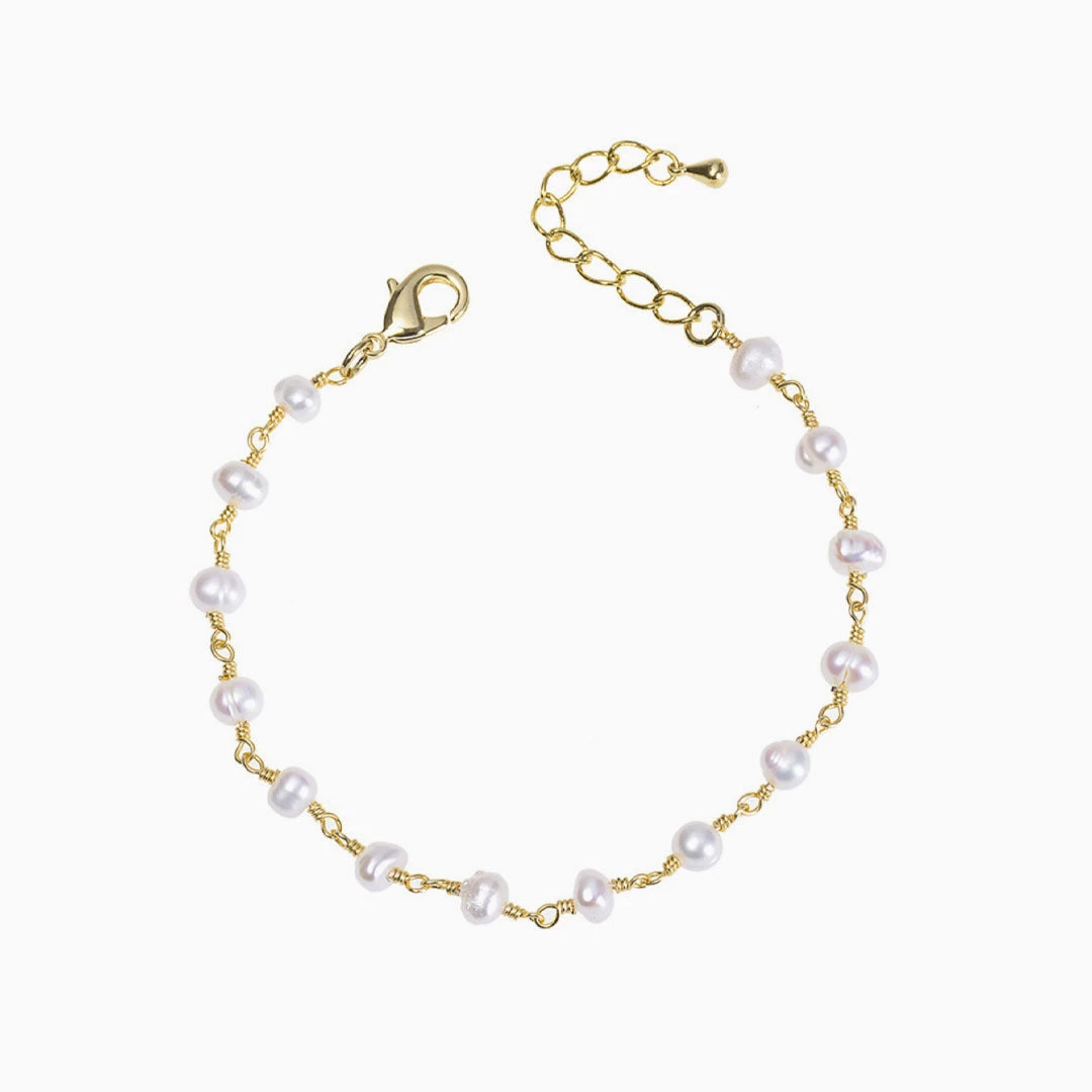 Add a simplistic elegance to your look with this classic bracelet. Crafted with plated alloy, stand out in pretty faux pearl embellishments, featuring a single strand chain, an adjustable fit with a teardrop end and finished with a lobster-clasp fastening. Find more trendy women’s bracelets and chic jewelry in our boutique, and stack or team with a coordinating gold collection for a unique-meets-classic look.
