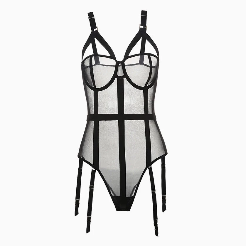 This tulle bodysuit effortlessly skims your figure, so you’ll feel really comfortable wearing it. Made of stretchy tulle and nylon, stand out in bandage styling with adjustable garter belts, featuring an underwire half cups with hollow out trim to the front, wide adjustable shoulder straps, a slim-fit shape and semi-sheer briefs in cheeky coverage. Find more trendy women’s teddies or chic lingeries in our boutique, and team with a matching robe for a unique sultry nightwear outfit.