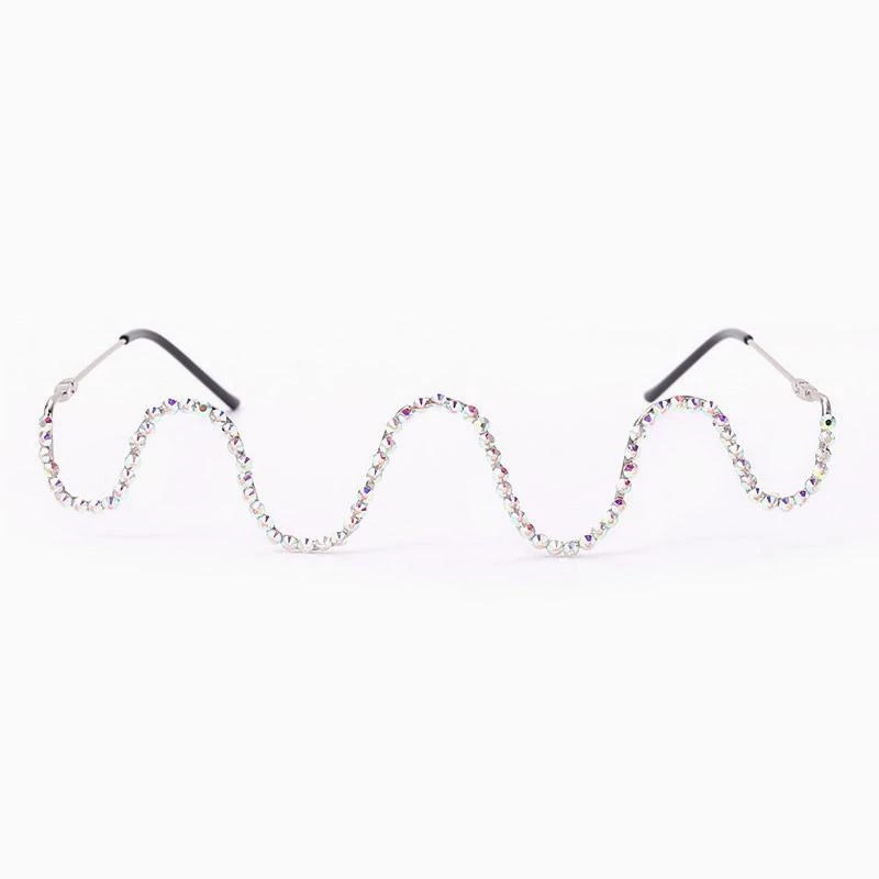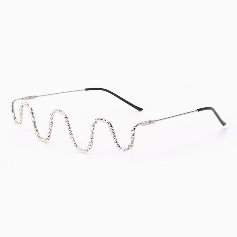 These eyeglass frame will delight you looking for a funny look. Crafted from alloy, embellished with a wave shape design with sparkled gem, featuring semi-rimless styling and metal temples. Find more unique women’s eyewear in our boutique, and finish a chic stylish look with our trendy accessories.