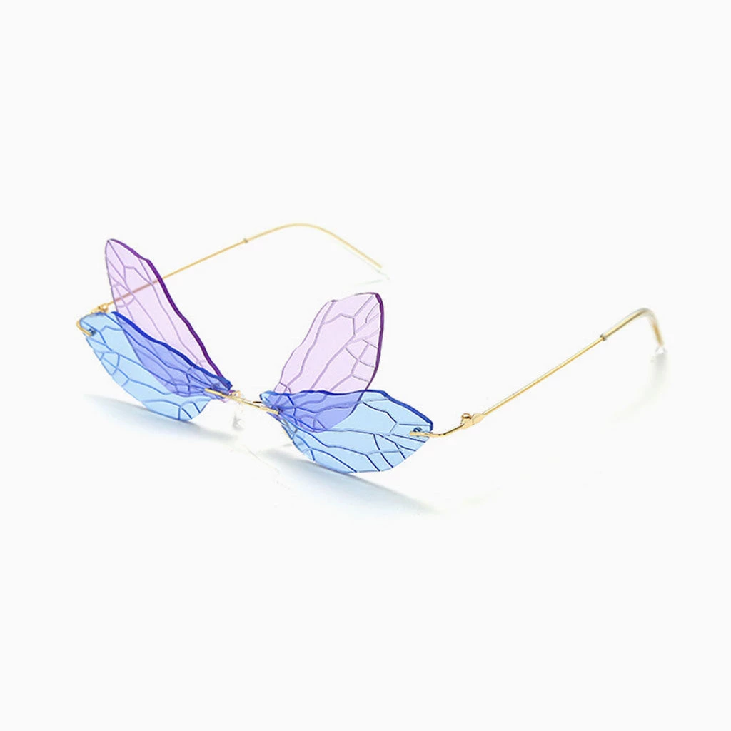 Trendy & Unique Iconic Look Colored Dragonfly Wings Rimless Sunglasses – Blue