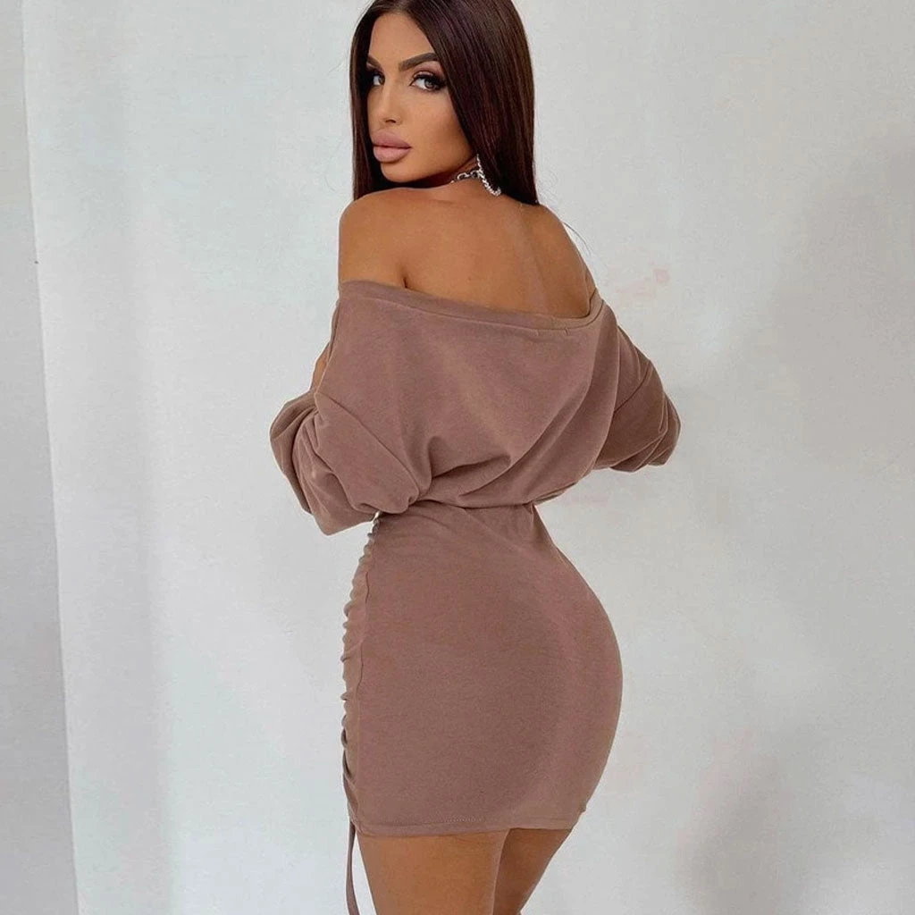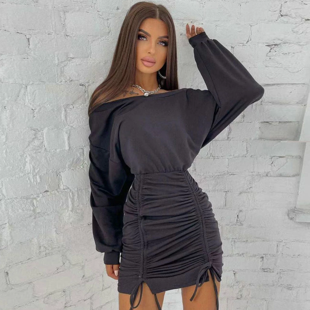 This sporty style mini dress will never go out of style. Crafted with polyester in solid color, stand out in double drawstrings & ruched details to the front, featuring a round neckline in versatile looks, a long sleeve styling, a pullover design, and ended up with a mini length. Find more unique women’s dresses or trendy clothing in our boutique, and wear it with a pair of sneakers for when going out.