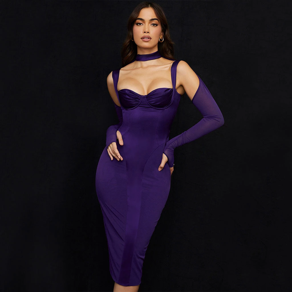 This silky sheer dress is brimming chic sexiness. Made of silky satin and mesh fabric, embellished with a mock-two-piece styling, featuring a pretty sweetheart neckline tailored with sheer long sleeves, cutout details on the shoulder and at the chest, a button fastening to the neck for easy on, a concealed zip fastening with a hollow-out to the rear, and ended up with a mid-calf length. Find more unique women’s dresses or trendy clothing in our boutique, and pair high heels and a party bag when going out.