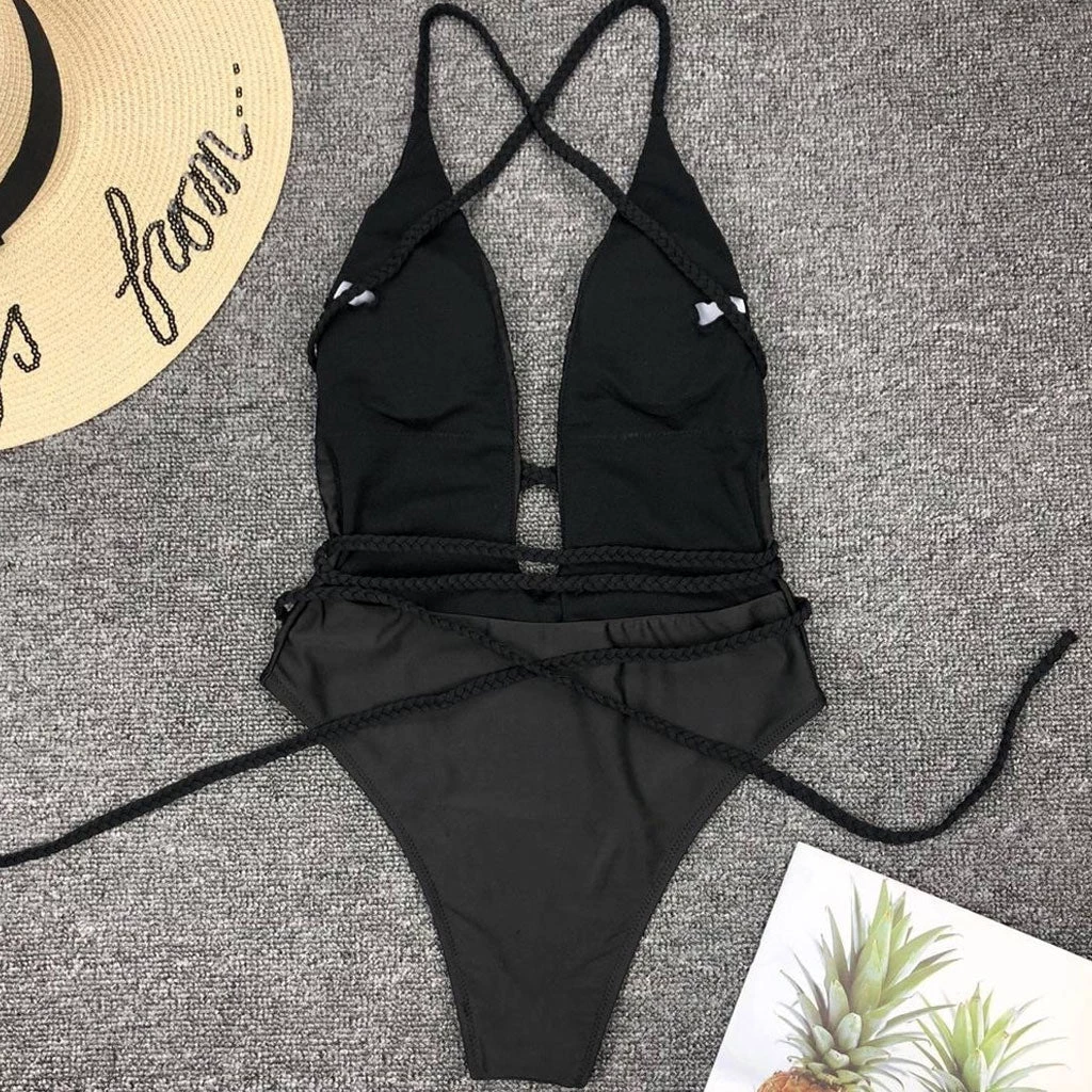 This sexy one-piece bathing suit is a versatile and universally appealing piece for your beach days. Made from stretchy nylon and spandex in solid color, embellished with a multiway infinity styling, featuring a plunging neck along with elongated braided straps over the shoulders, a low scoop back, detachable pads at the chest, and the cheeky bottom punctuated with high-cut leg openings. Find more trendy women’s one piece swimsuits or chic swimwears in our boutique, and add a floppy hat and kick back and enjoy a day poolside.