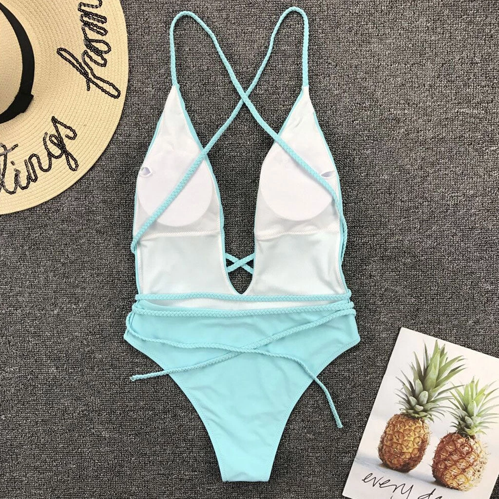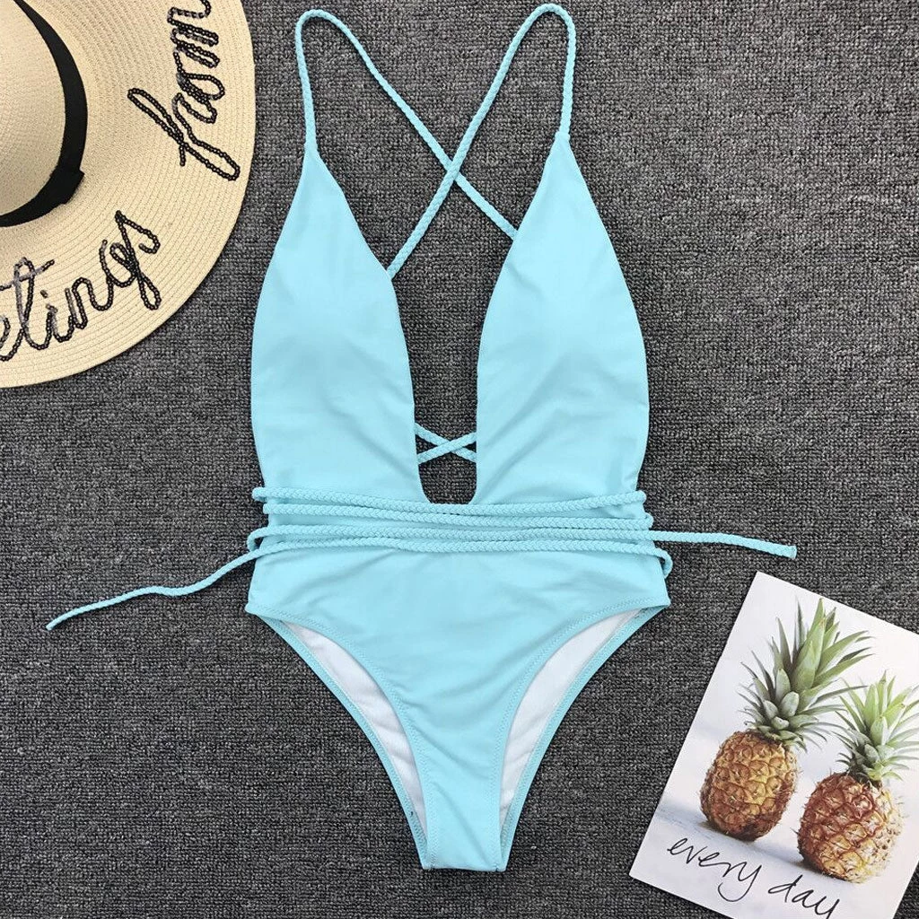 This sexy one-piece bathing suit is a versatile and universally appealing piece for your beach days. Made from stretchy nylon and spandex in solid color, embellished with a multiway infinity styling, featuring a plunging neck along with elongated braided straps over the shoulders, a low scoop back, detachable pads at the chest, and the cheeky bottom punctuated with high-cut leg openings. Find more trendy women’s one piece swimsuits or chic swimwears in our boutique, and add a floppy hat and kick back and enjoy a day poolside.