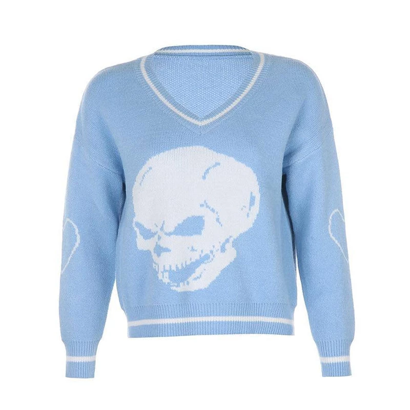 This stylish bone pattern sweater is Halloween best pick in no doubt. Crafted with blend acrylic and polyester, embellished with scary skeleton pattern front and two hearts printed on sleeves, featuring a loose fit cut structured with a ribbed V-shape neckline, a long sleeve styling with dropped shoulders and ribbed cuffs, and a regular length accented with a ribbed hem. Find more trendy women’s sweaters or unique clothing in our boutique, and layer it with everything-depending on the look you like.