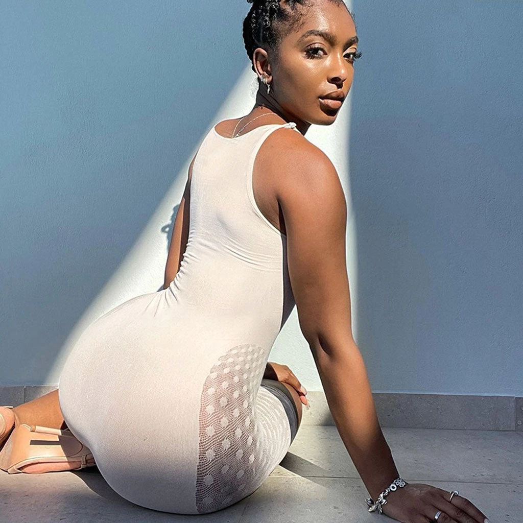 This semi-sheer romper is the one-and-done piece your wardrobe needs. Made of blend mesh and polyester fabric, stand out in dramatic cascading cut-outs to the front along with sweetheart-shaped rhinestone trimmed, featuring a round neckline tailored with a zip fastening to the rear, a slim fit accented in spots print, and a thigh length bottom with seamed hems. Find more trendy women’s rompers or unique clothing in our boutique, and finish a fashion look with high heel sandals and a tote bag.