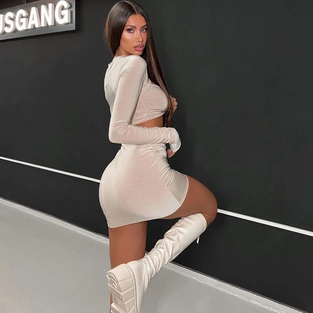 Babe, you’ll be sure to stun in the bars with this sexy skirt set. Made of stretchy polyester fabric in solid color, stand out in distinctive twist designs along with ruched details, featuring a basic top with an alluring cutout to the chest, elongated long sleeves, and a cropped length accented with a bare midriff cut at the waist, and complete a night-ready two-piece set with a body con miniskirt, an asymmetric high rise and a short hem. Find more trendy women’s sexy matching sets or unique clothing in our boutique, and easily styled for parties or bars all depending on shoes and accessories you paired.