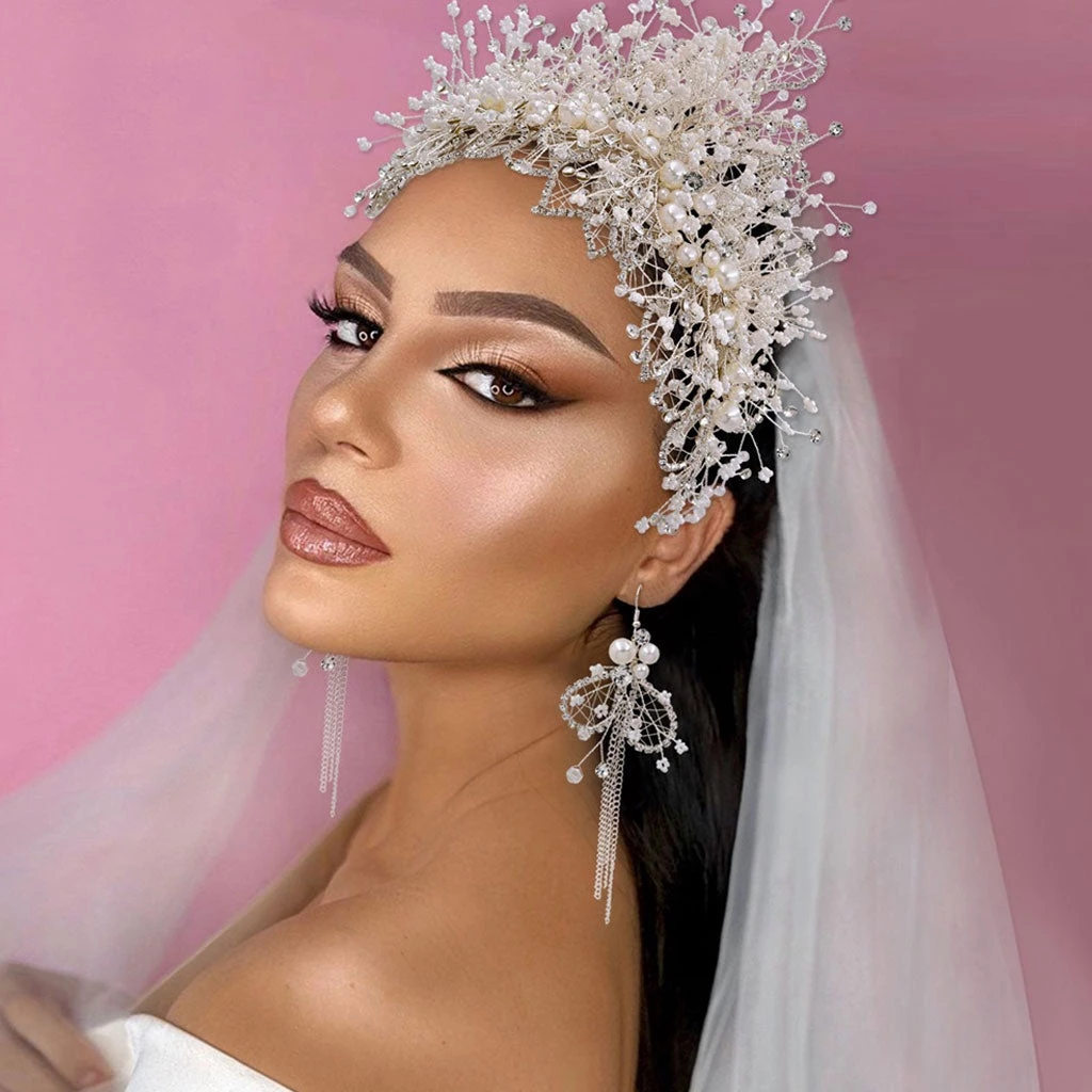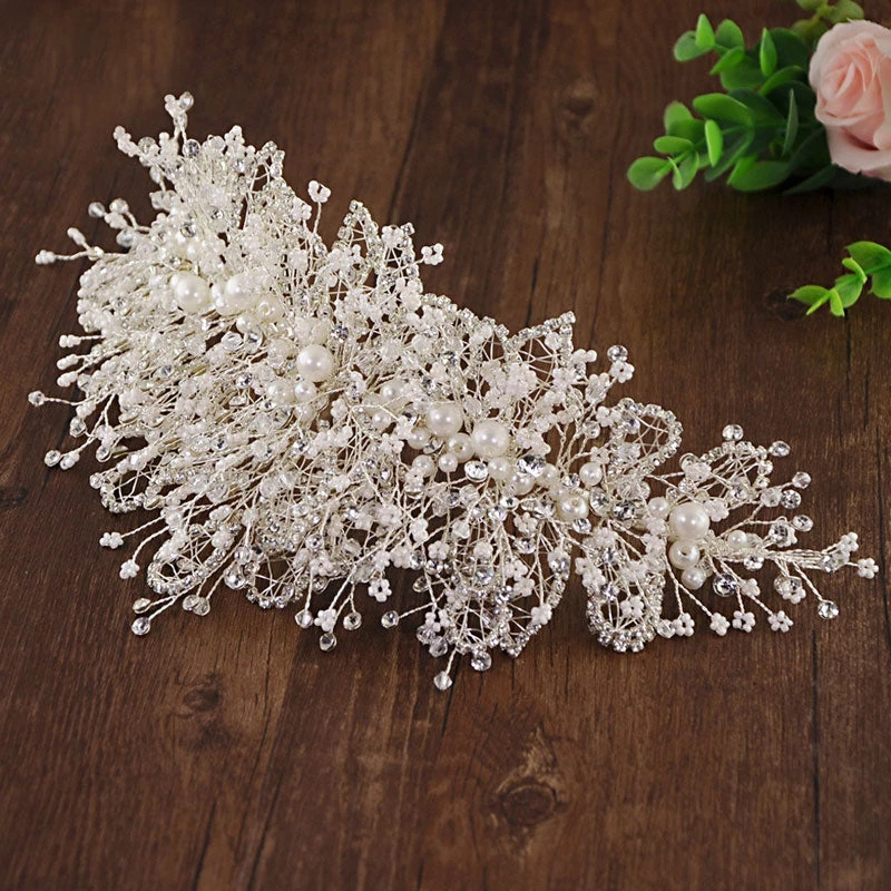 This beautiful headband is the epitome of elegance. Made of silver-tone hardware fabric, embellished with its fully pearlized beads & rhinestones encrusted surface, featuring a circular cut shaped band covered with starry sky motifs and butterflies, and finished with a flexible slip-on style. Find more trendy women’s headbands or unique hair accessories in our boutique, and wear it to elevate any cocktail or special occasion dress.
