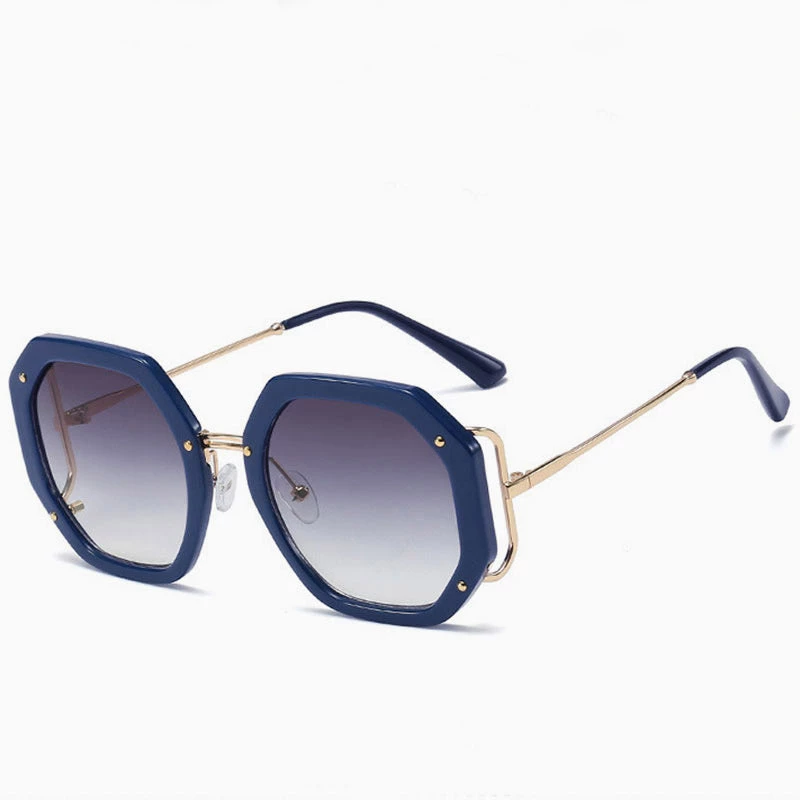 The pair of asymmetric sunglasses gives a cool and stylish feel. Crafted from PC and stainless steel, embellished with a hexagon frame, featuring gradient colored lenses along with a double nose bridge, and gold-tone straight arms with curved tips. Find more unique women’s sunglasses and trendy eyewear in our boutique, and complete a retro street look with our accessories.