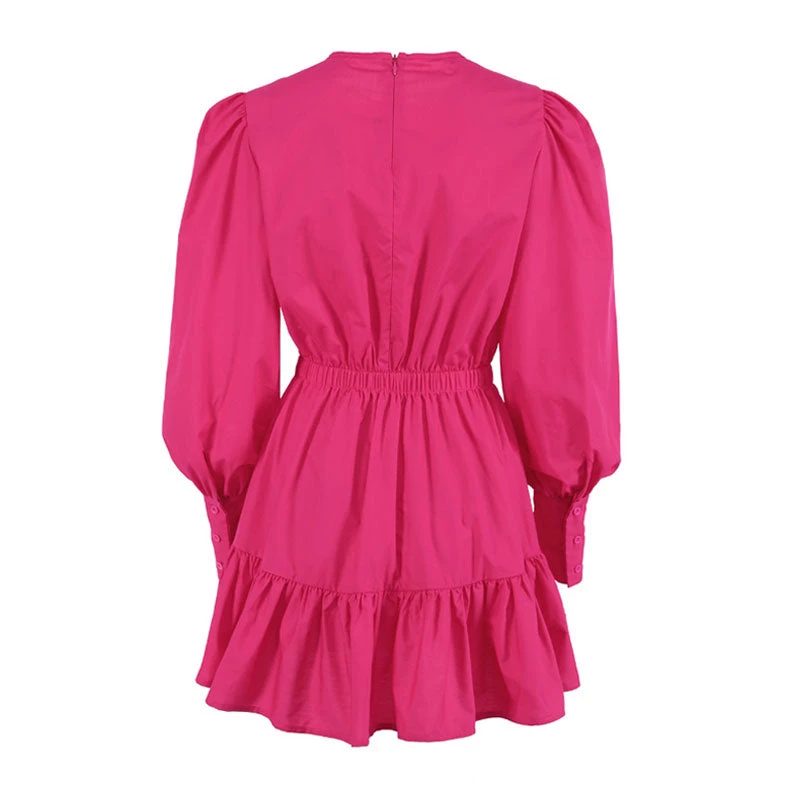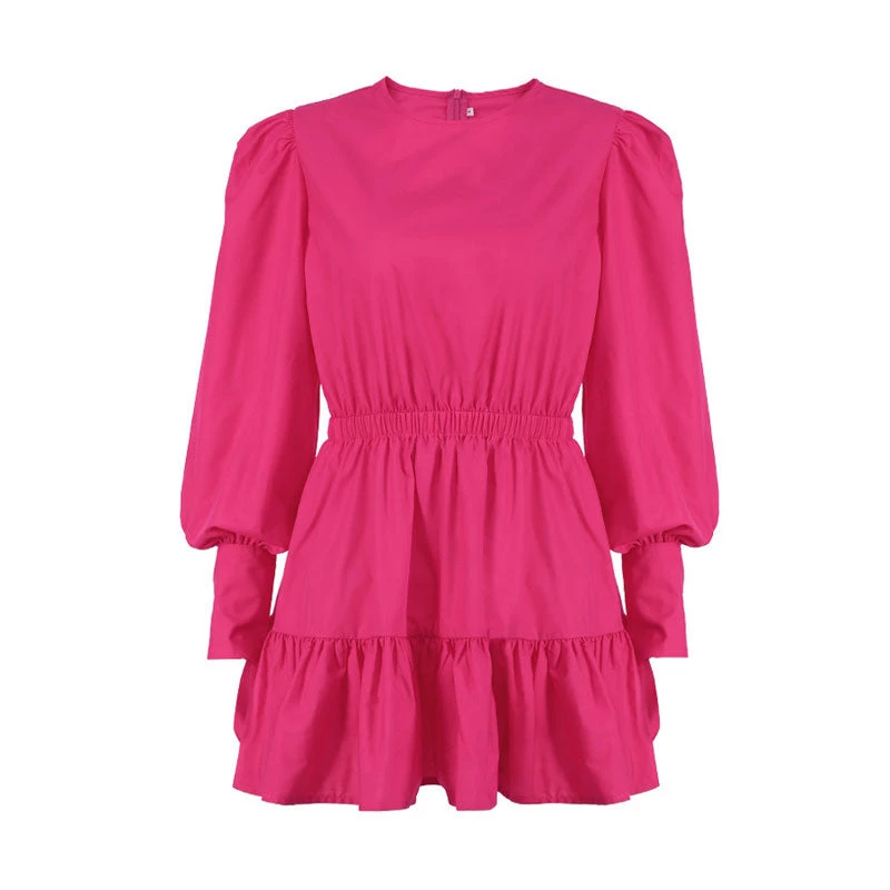 This saturated color dress is an easy opportunity to bring some color into your life. Crafted with lightweight polyester in solid color, embellished with long puffy sleeves with buttoned cuffs, featuring a crew neckline along with a zip fastening to the rear, a covered elastic waistband with frill details, and a mini length accented with a flounce hem. Find more trendy women’s dresses or unique clothing in our boutique, and pair with thigh high boots and a chic handbag.