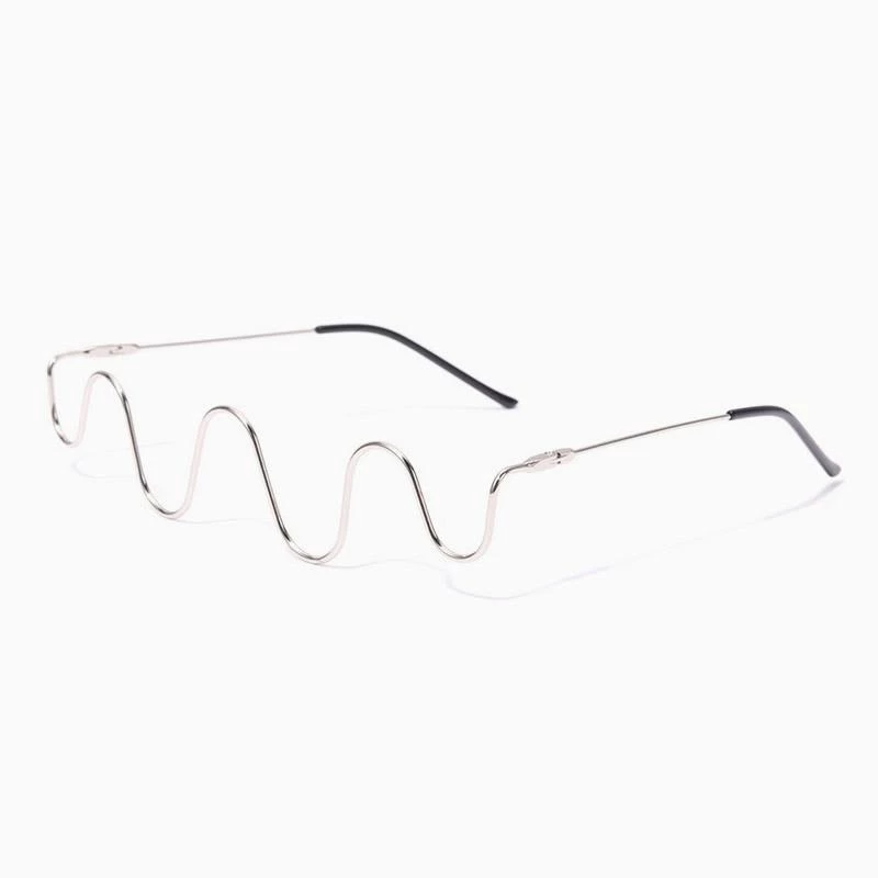 These eyeglass frame will delight you looking for a funny look. Crafted from alloy, embellished with a wave shape design, featuring semi-rimless styling and metal temples. Find more unique women’s eyewear in our boutique, and finish a chic stylish look with our trendy accessories.