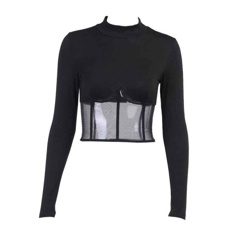 It is ready to show off your curves with this crop top. Made of soft cotton, mesh and polyester fabric, stand out in a semi-sheer splicing, featuring a high collar tailored with long sleeves, a pullover design, and a slim fit cut with a cropped length. Find more unique women’s cropped tops or clothing in our boutique, and wear it with a pair of high jeans for a trendy look.