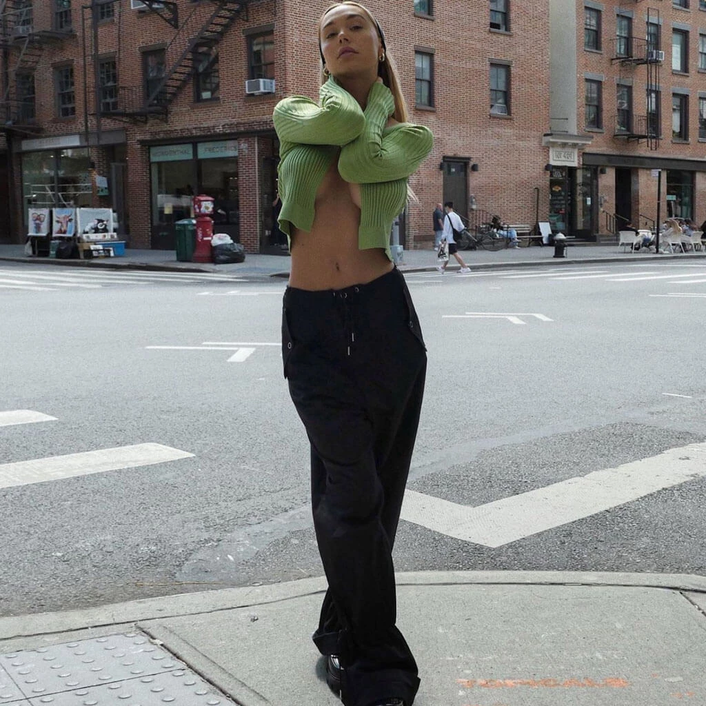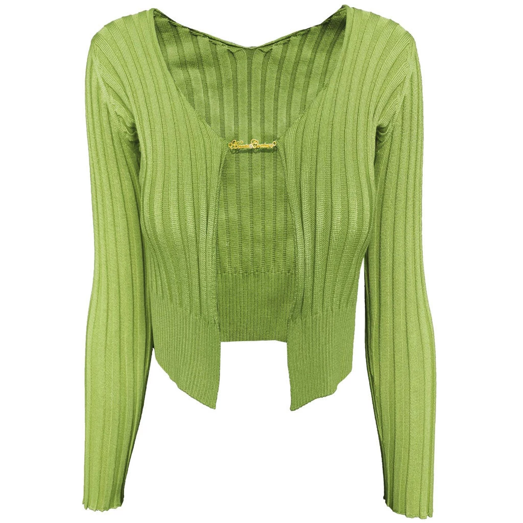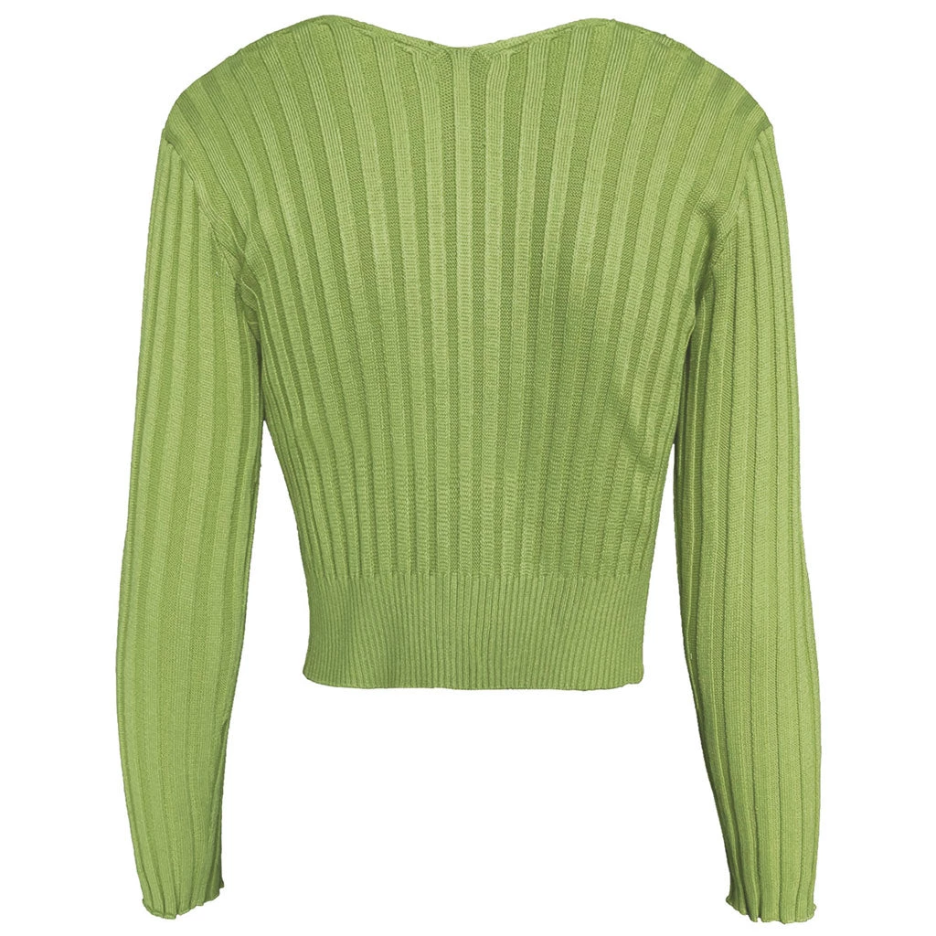 This cropped cardigan is cozy and unique. Made of soft ribbed jersey and polyester fabric, embellished with a gold-tone letter hardware trimmed on the open front, featuring a relaxed fit cut structured with a V neckline and a plunging back, a long sleeve styling, and a cropped length accented with a bare midriff cut at the waist. Find more trendy women’s cardigans or fashionable clothing in our boutique, and pair it with a baguette bag and vintage denim for a chic street look.