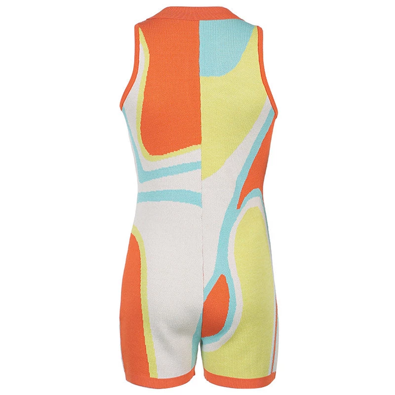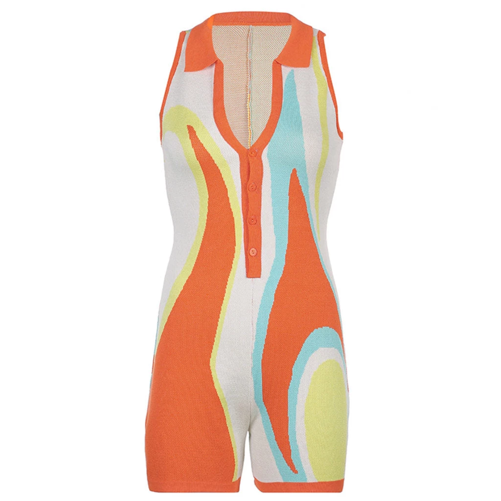 This colorful bodysuit is a great one-and-done pick for your weekend rotation. Made from stretchy knit and cotton blend, stand out in multicolored tie-dye stripes overlay, featuring a collared V neckline along with a partial button placket to the front, a slim fit tailored without sleeves, and a thigh length bottom. Find more trendy women’s rompers or unique clothing in our boutique, and pair it with a bold chunky bag and sneakers for your weekend.