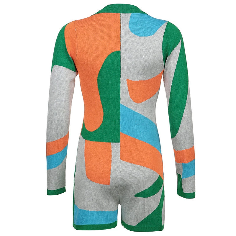 This colorful bodysuit is a great one-and-done pick for your weekend rotation. Made from stretchy knit and cotton blend, stand out in multicolored tie-dye stripes overlay, featuring a fold-over collar along with a partial button placket to the front, a slim fit tailored with short sleeves, and a thigh length bottom. Find more trendy women’s rompers or unique clothing in our boutique, and it works equally well with simple slide sandals and statement-making sneakers.