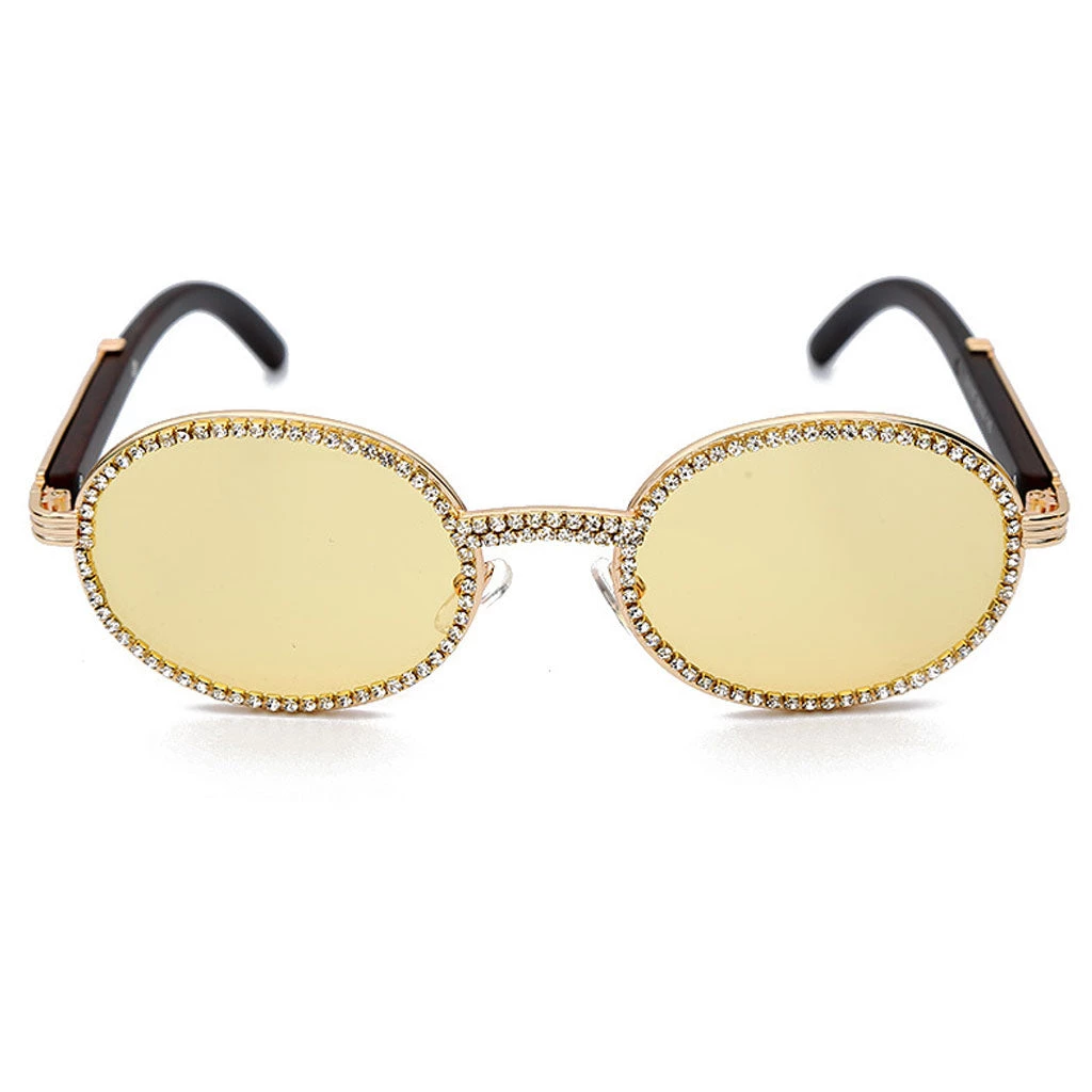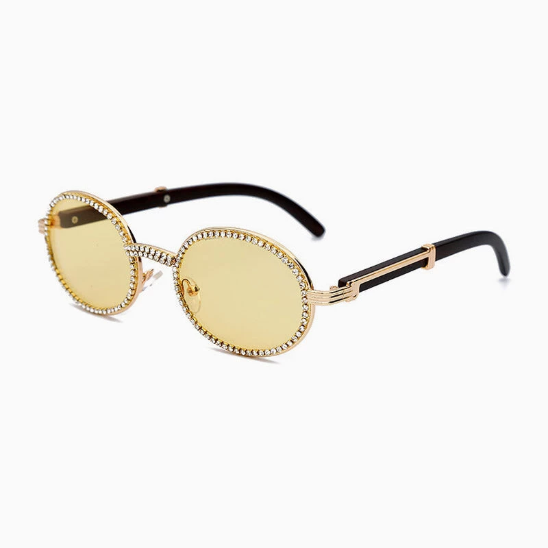 Trendy & Unique Vintage Rhinestone Trimmed Frame Oval Shape Sunglasses – Yellow Accessories