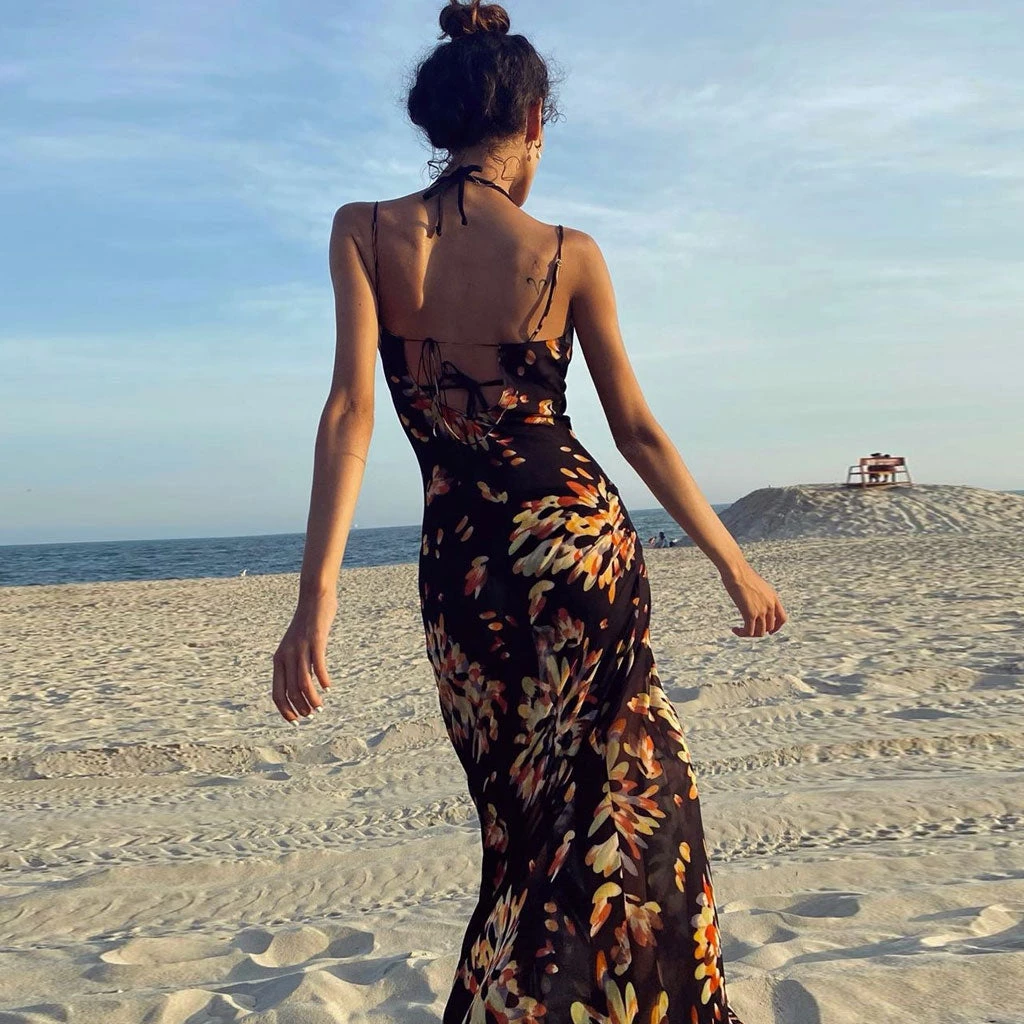 You can’t go wrong with a sleek slip. Made of stretchy polyester fabric, embellished with an allover retro-inspired print, featuring a flattering fit cut along with a draped cowl neckline, adjustable slender straps on the shoulders, a self-tie closure with a cutout to the rear, and ended up with a particularly long length. Find more unique women’s slip dresses or trendy clothing in our boutique, and complete a beautiful outing look with heeled sandals.