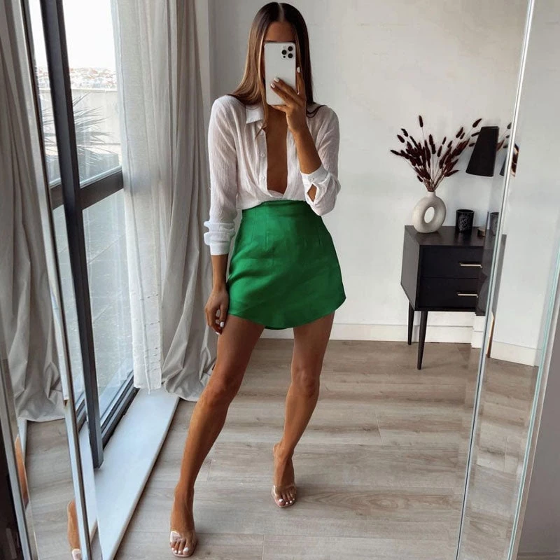 This color and fabric really give this bodycon skirt a ’90s edge. Made of silky satin and polyester in solid color, embellished with a stunning bright-colored hue, featuring a high rise waistband along with a concealed zip fastening and seams, a slim fit cut ended up with a curvy length. Find more unique women’s satin skirts or trendy clothing in our boutique, and tuck in a shirt dress, and toss on an oversized blazer for an iconic look.