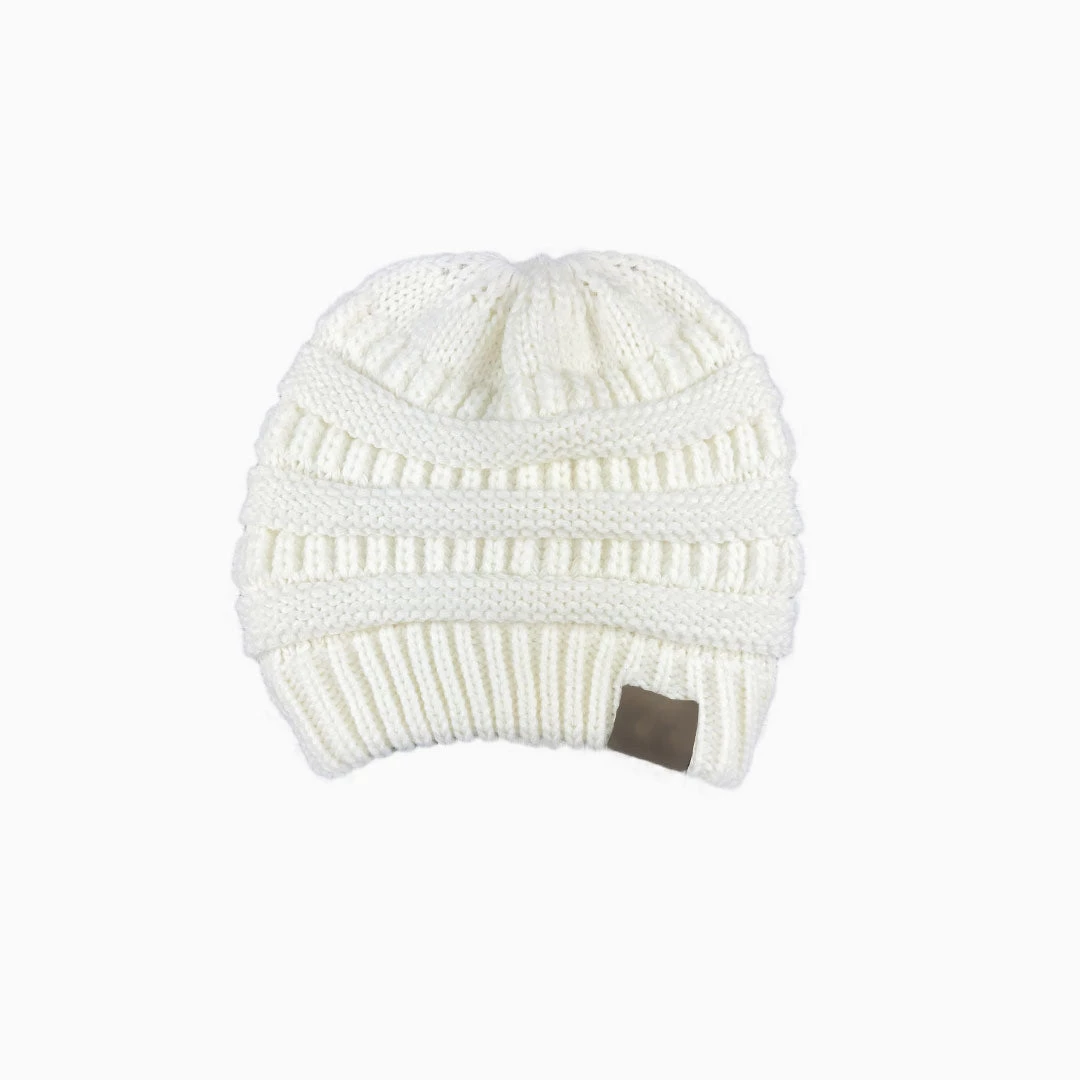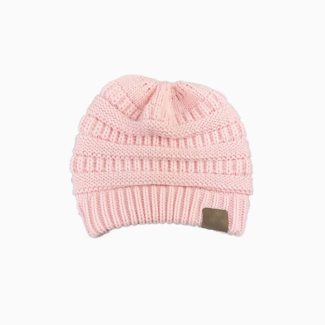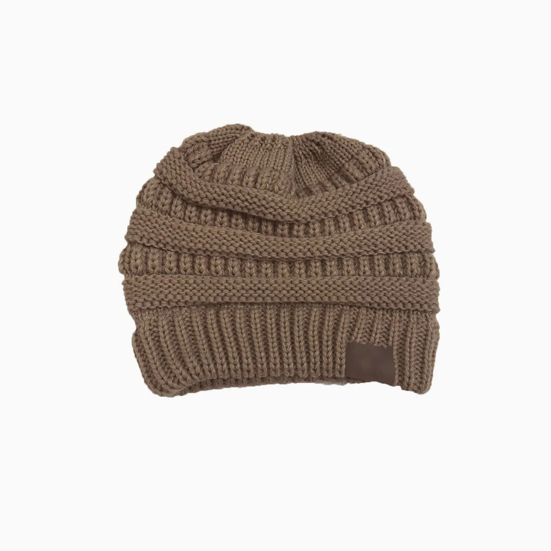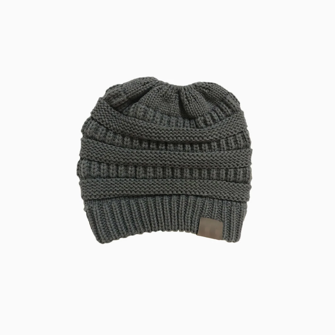 Stay cozy in this so soft beanie. Crafted with acrylic yarn, embellished with a ponytail hole on the top, featuring textured pattern and a tag on cuffed hem. Find more trendy women’s hats and headwear in our boutique, and complete a warm and fashionable street look with our unique accessories