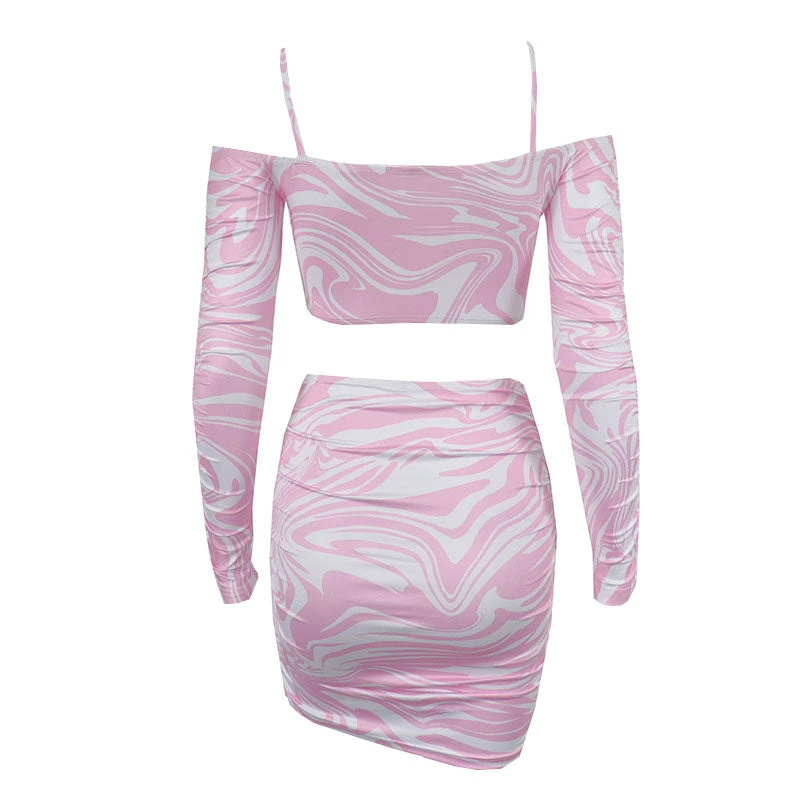 This little pink set will look so trendy for summer shopping and have you covered at the club. Made of blend polyester, stand out in a disordered tie-dye print throughout, featuring an off-the-shoulder neckline with elasticated cami straps, long sleeves, and a slip-on design, complete a street style two-piece set with a high rise miniskirt, a bodycon silhouette with an elasticated waistline and a short length. Find more fashionable women’s tie dye sets or unique clothing in our boutique, and complete a flattering look between street wear and nightwear.