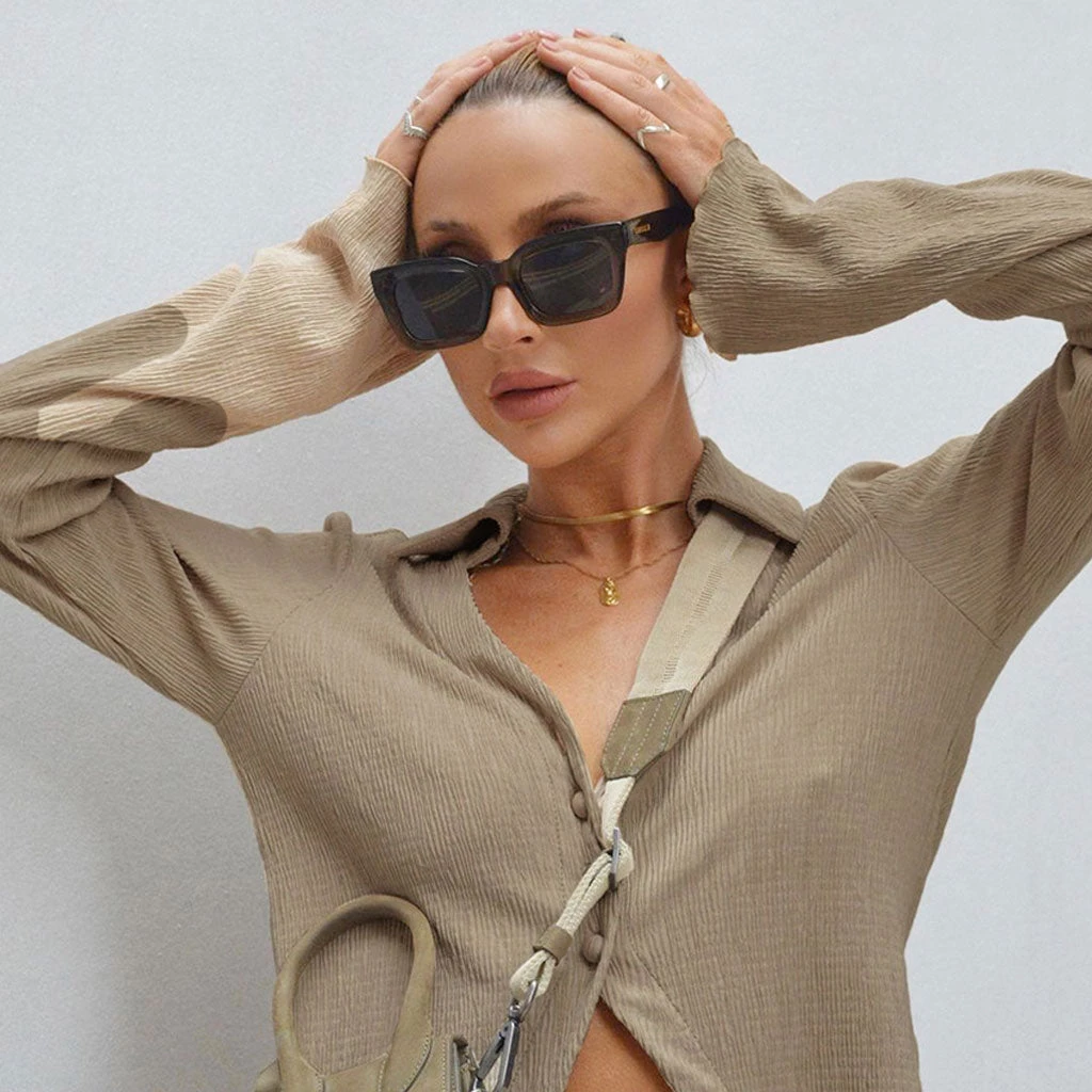 Keep it casual and sexy in this athflow pant set. Crafted with stretchy polyester fabric, stand out in a shirred profile, featuring a slim fit cut structured with a spread collar with a V-shaped neckline, a button placket tailored with a front split, long sleeves trimmed with stringy-selvedge cuffs, and complete an athleisure two piece set with a pair of high rise pants tailored with a covered elastic waistband and the particularly long length trimmed with side slits. Find more trendy women’s matching sets or unique clothing in our boutique, and go for styling with tonal slides and matching boots alike.