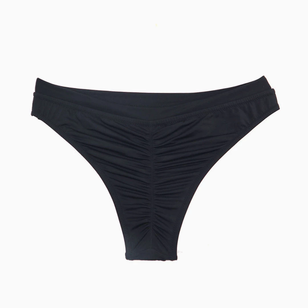 This bikini bottom is a glamorous update to a beach basic. Made of polyester and elastane, stand out in ruching detailing to the rear, featuring a mid rise along with elastic zigzag stitching edging and a banded waistline, high-cut leg silhouette covered with full lining. Find more women’s bikini bottoms or unique swimwear in our boutique, and finish a trendy bikini set with a matching bikini top.