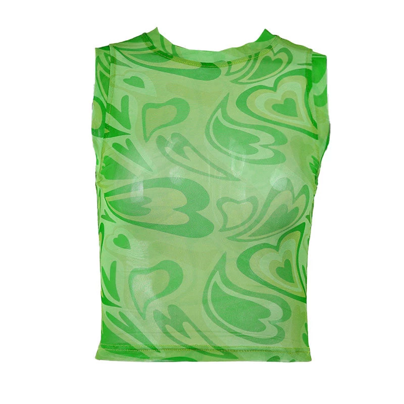 This mesh crop is see-through. Crafted with stretchy mesh and polyester, embellished with sweetheart prints throughout, featuring a slim fit structured with a regular round neckline, a pullover styling and a bare midriff cut at the waist. Find more trendy women’s cropped tops or unique clothing in our boutique, and pair it with a tube top and a pair of denim for an iconic look.