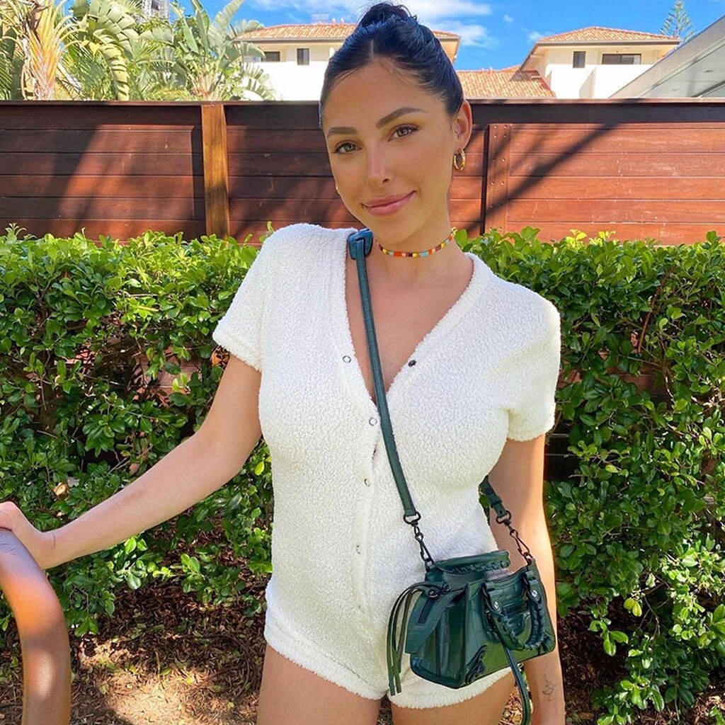 Trendy & Unique What’s New Fuzzy Deep V Neck Short Sleeve Button Up Romper – White