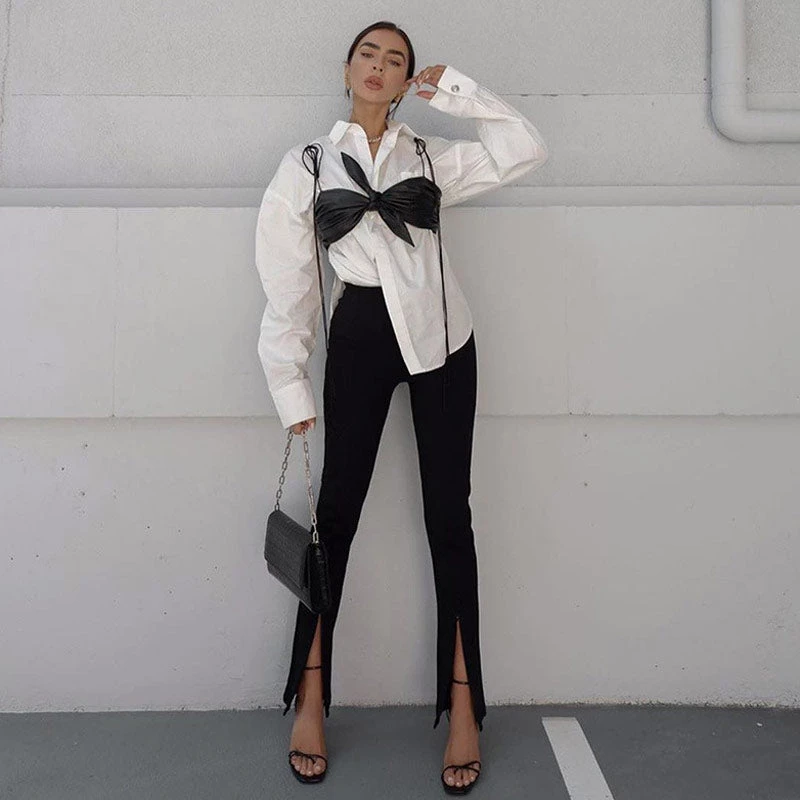 Trendy & Unique What’s New Iconic Style High Waist Zipper Slit Front Skinny Pants – Black