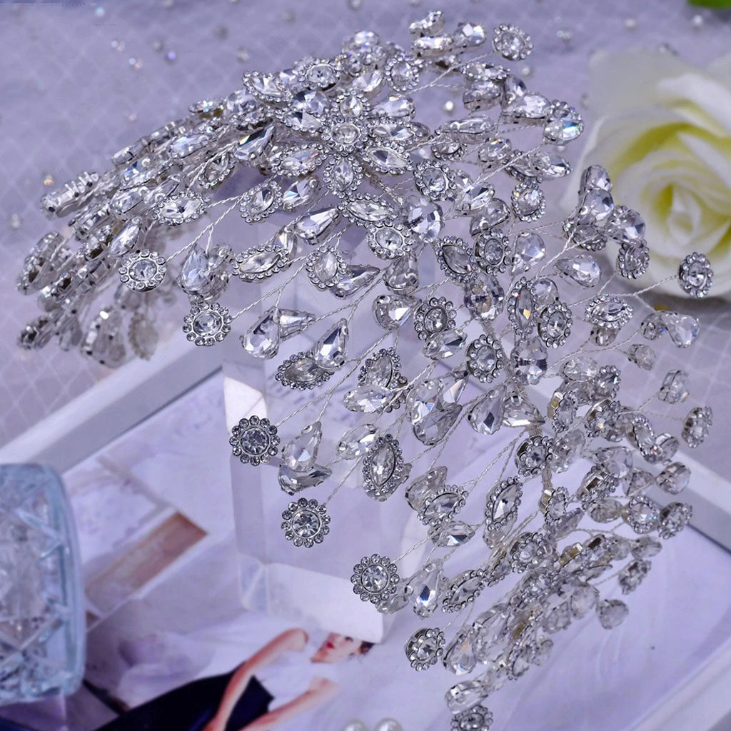 This magnificent hair accessory is definitely the epitome of glamour. Made of silver-tone hardware fabric, embellished with its fully crystals & rhinestones encrusted surface, featuring a circular cut shaped band covered with flower motifs and water-drops, and finished with a flexible slip-on style. Find more trendy women’s headbands or unique hair accessories in our boutique, and wear it to elevate any cocktail or special occasion dressing.