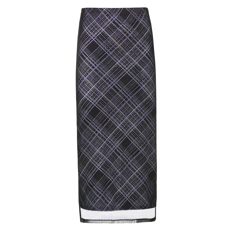 This vintage skirt is iconic indeed. Made of stretchy mesh and cotton blend fabric, embellished with plaid patterns throughout, featuring a slip-on sleek cut tailored with a covered elastic high rise waistband, a semi-sheer mesh profile, and a mid-calf length. Find more unique women’s skirts or trendy clothing in our boutique, and style it with a denim jacket, a cute pair of socks and platform shoes for a retro-inspired look.