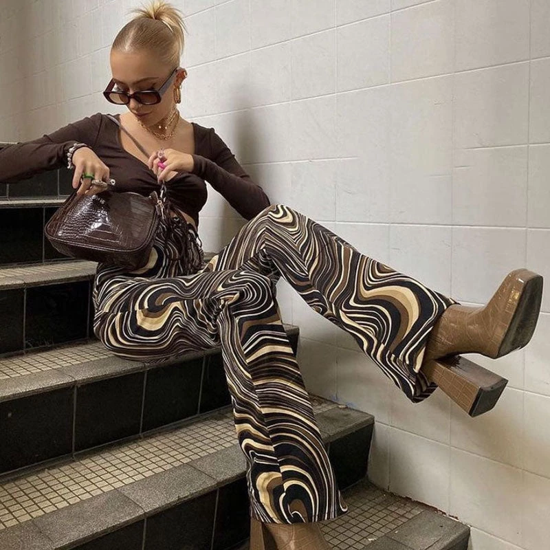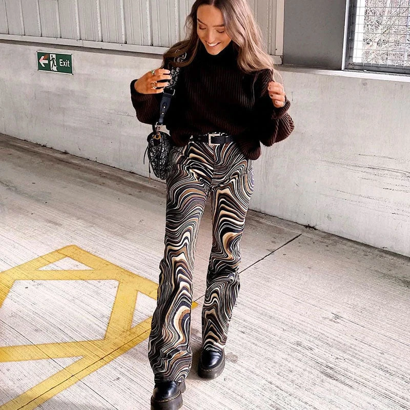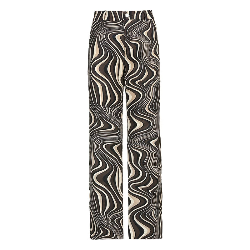 This pair of jeans feels peak ’90s nostalgia. Made of blend cotton and polyester, embellished with allover disordered wave prints, featuring a high rise waistband trimmed with belt loops, a button closure along with a concealed zip fastening to the front, a straight cut structured with particularly long hems. Find more unique women’s jeans or trendy clothing in our boutique, and pair it perfectly with tonal sweaters and chunky boots.