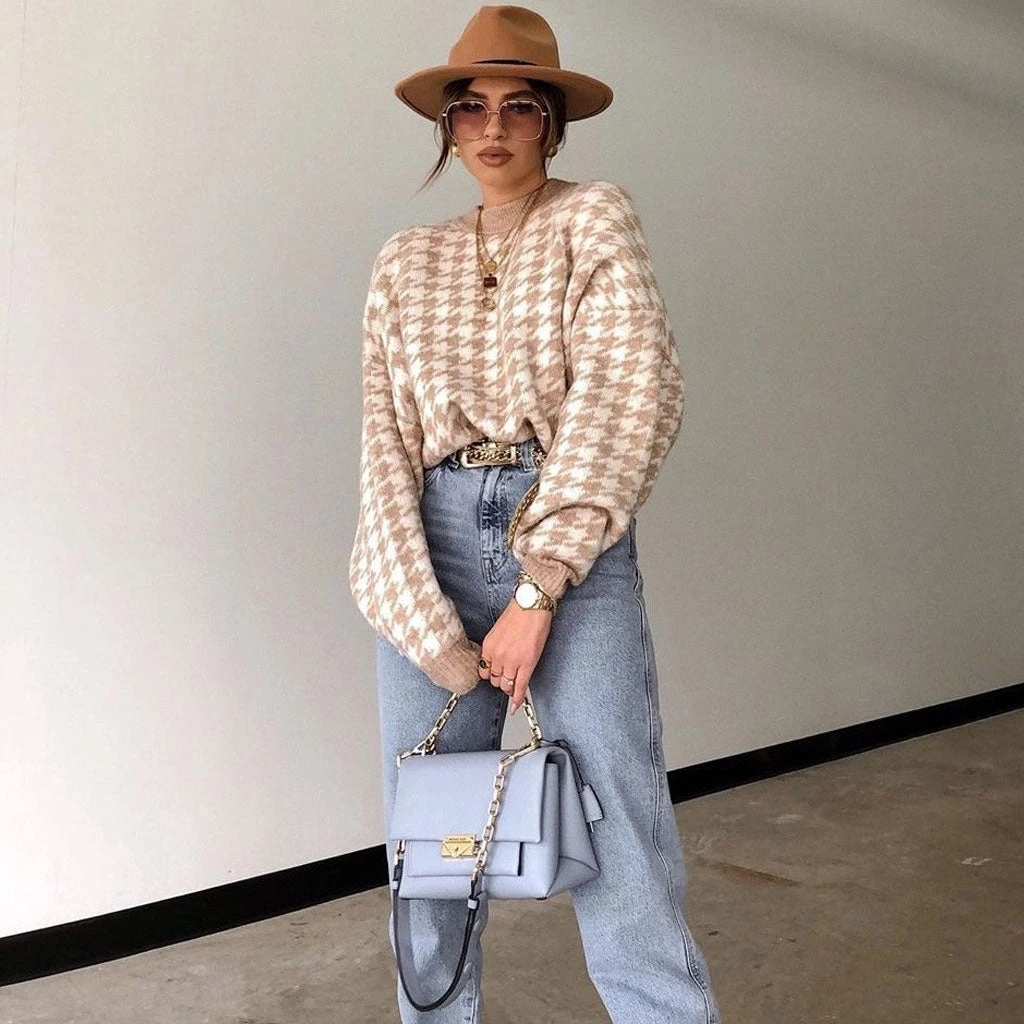 This knit top is an easy choice for autumn and winter. Made of acrylic blend, stand out in color block geometric patterns throughout, featuring a roomy fit cut structured with a ribbed high collar, long sleeves trimmed with dropped shoulders and ribbed cuffs, and a regular length with a ribbed hem. Find more unique women’s pullover sweaters or trendy clothing in our boutique, and simply team it with retro denim for a vintage street look.