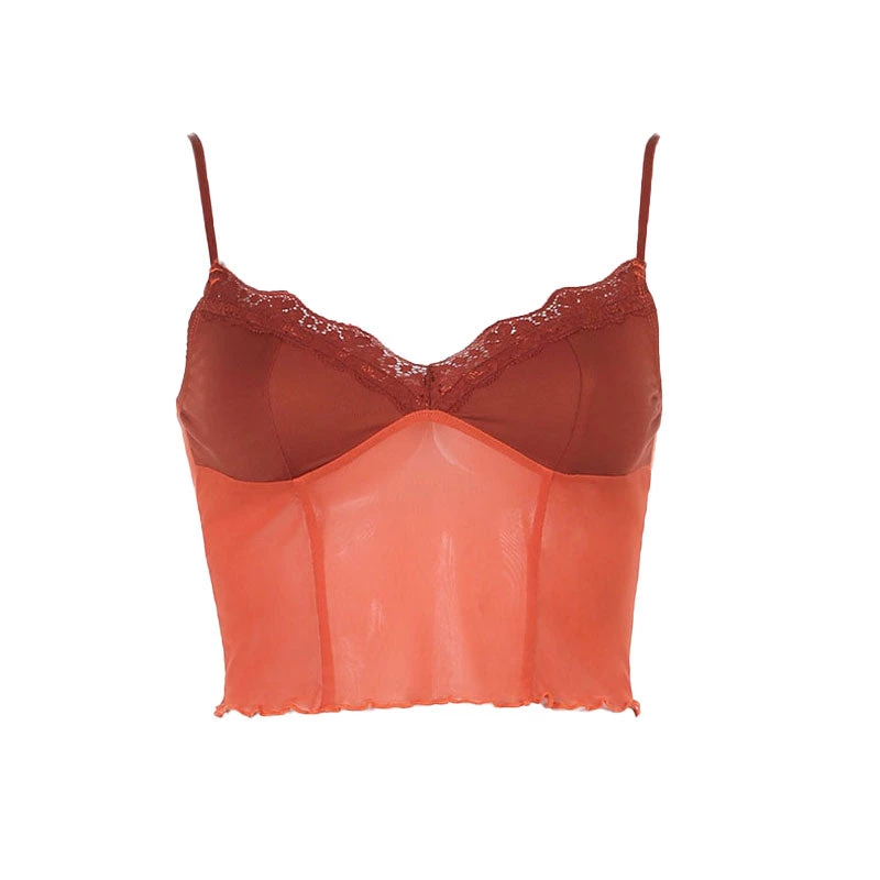 This naked crop is see-through. Made of lightweight polyester fabric, embellished with a semi-sheer profile, featuring a V neckline trimmed with lace edges and interior lining, a pullover slim fit cut structured with elastic slender shoulders, and a ruffled mini length with a bare midriff cut at the waist. Find more unique women’s crop tops or trendy clothing in our boutique, and pair it with a baguette bag and vintage denim for a street look.