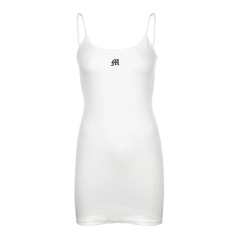 This summer vibe dress is a cool-girl basic all year around. Made of stretchy polyester fabric, embellished with a letter M logo, featuring a scoop neckline along with elastic slender straps on the shoulders, a slim fit cut in pullover styling, and ended up with a mini length. Find more unique women’s dresses or trendy clothing in our boutique, and wear solo or layer it with everything-depending on the street look you want.